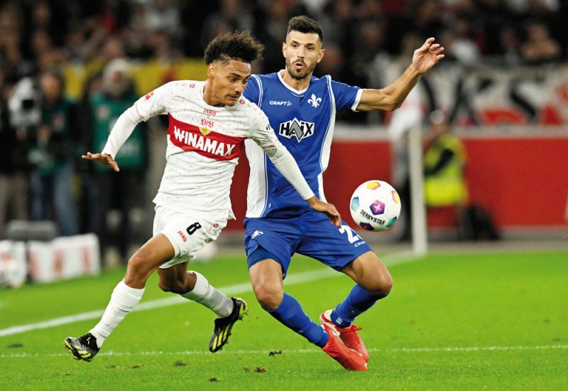 Der VfB Stuttgart im Höhenflug. Auch die Aufsteiger aus Darmstadt hatten gegen die Mannschaft von Sebastian Hoeneß keine Chance. Foto: Thomas Kienzle/AFP via Getty Images