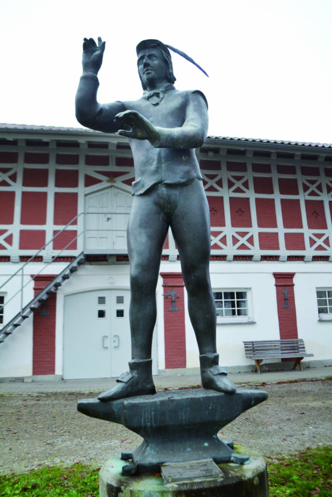 Wie schon vor 500 Jahren trennen die beiden Dörfer Baltringen und Sulmingen nur zwei Kilometer, ehedem gehörten sie zu unterschiedlichen Herrschaften und heute zu unterschiedlichen Gemeinden. Sulmingen, die Herkunft von Ulrich Schmid, ist Teilort der Gemeinde Maselheim, die bis vor kurzem noch den ersten grünen Bürgermeister der Republik vorweisen konnte. Elmar Braun sorgte schon bald nach seinem Amtsantritt 1991 dafür, dass der Schmied von Sulmingen zumindest als Skulptur, vom Bildhauer Reinhard Böhling geschaffen, ins dörfliche Bewusstsein rückte. Seit 1994 steht ein jugendlich wirkender Ulrich Schmid auf einem Amboss in der Sulminger Ortsmitte, und vermutlich zur Ermutigung stellte sich der grüne Bürgermeister ein Abguss des Schmieds vor sein Amtszimmer im Maselheimer Rathaus. Denn auch der inzwischen pensionierte grüne Bürgermeister Elmar Braun war mal jung und die Grünen hatten revolutionäres Potenzial. Aber auch das ist Geschichte. Stattdessen strich die grün-rote Landesregierung 2016 den Bauernkrieg aus dem Lehrplan, wogegen der Geschichtslehrer Franz Liesch im Namen der Arbeitsgemeinschaft Deutscher Bauernkriegsmuseen protestierte und in seinem Schreiben an das Kultusministerium darlegte: „Gerade in Zeiten der Irrungen und Verwirrungen um den hohen Rang von Freiheit, Menschenrechte, Gleichberechtigung und Toleranz, wie wir sie heute erleben, ist das Ringen um eben diese Werte ein fundamentales Thema. Man kann dies nicht dem Thema ‚Französische Revolution‘ allein überlassen. In diesem Sinne darf das Thema Bauernkrieg, beziehungsweise Revolution von 1525, in keinem Bildungsplan fehlen.“ Was bis heute der Fall ist.
