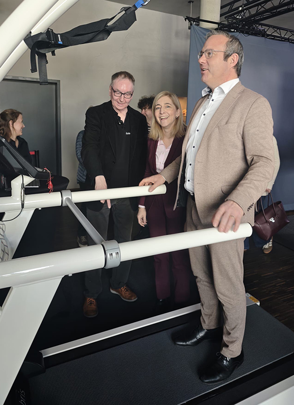 Das hochinnovative Medizintechnikunternehmen, das sich auf biomechanische Messsysteme spezialisiert hat, präsentierte sich als eindrucksvolles Beispiel für die Leistungsfähigkeit und Zukunftsfähigkeit der Gesundheitswirtschaft in Baden-Württemberg. Geschäftsführer Brunner stellte seinen Gästen die Firma, ihre Produkte sowie die aktuellen Entwicklungen vor.
