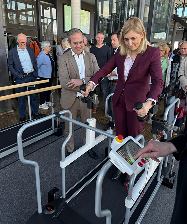 Raimund Haser MdL tut es der Ministerin gleich, begibt sich ebenfalls aufs Laufband. Foto: CDU