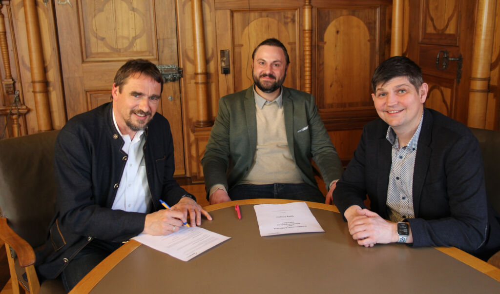 Bevor die ersten Bagger rollen, unterzeichnete Bürgermeister Rainer Magenreuter mit Daniel Weisshaar von der Deutschen Telekom und Benjamin Roll von GlasfaserPlus eine Vereinbarung, die die gemeinsamen Ziele beim Glasfaserausbau unterstreicht. „Wir freuen uns, dass die Deutsche Telekom in einem weiteren Abschnitt für unsere Bürgerinnen und Bürger schnelles Internet zur Verfügung stellt“, sagte Bürgermeister Magenreuter bei der Unterzeichnung der Absichtserklärung im Isnyer Rathaus. Daniel Weisshaar fügte hinzu: „Wir wollen mit der Erklärung ein starkes Signal setzen, dass wir es gemeinsam angehen.“