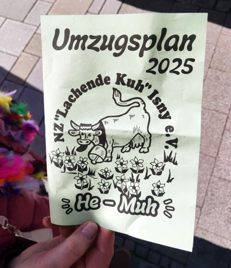 Zur Geschichte der Isnyer Fasnet heißt es auf der Webseite der Lachenden Kuh: „Im Jahr 1880 schlossen sich Isnyer Fasnachtsfreunde zusammen, es entstand die Faschingsgesellschaft Narhalla … 1961 wurde der erste Umzug der Narrenzunft durchgeführt. Am Elften Elften des Jahres 1963 wurde die Zunft im Gasthaus ,Ochsen‘ offiziell gegründet. Der Name der Narrenzunft „Lachende Kuh“ entstand aus einem Gerichtsprozess, der im Allgäu stattgefunden hat. Touristen hatten gegen das alltägliche Kuhgeläut geklagt. Diese Klage wurde aber vor Gericht abgeschmettert. Darüber freuten sich die Kühe und lachten.“