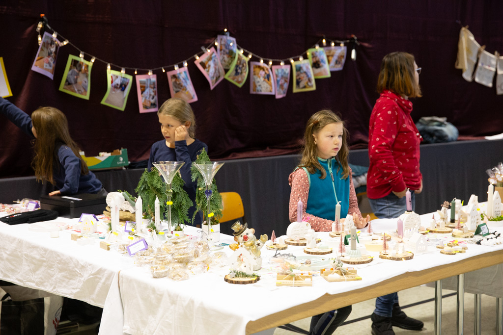 Die Kindergartenkinder und Grundschüler sowie eine Abordnung des Musikvereins sorgten zwischendurch für eine weihnachtliche musikalische Umrahmung. Im Schulhaus gab es den traditionellen Verschenkemarkt und im Kindergarten wurde für die Kleinen ein Erzähltheater aufgeführt.
