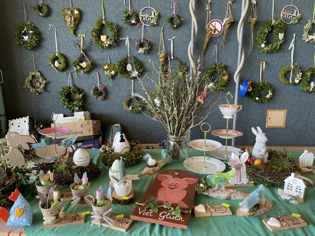 Immenried – Am Sonntag, 22. März, lädt die Immenrieder Strick-, Näh- und Bastelgruppe ab 13.30 Uhr in die Turn- und Festhalle Immenried zu ihrer traditionellen Ausstellung ein. Die Besucher können, wie jedes Jahr, Gestricktes, Genähtes und Osterdekorationen erwerben und einen gemütlichen Nachmittag bei Kaffee und selbstgebackenen Kuchen verbringen. Der Erlös kommt karitativen Zwecken sowie Projekten oder Einrichtungen in Immenried zugute.