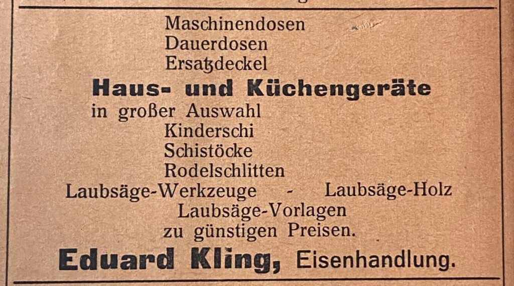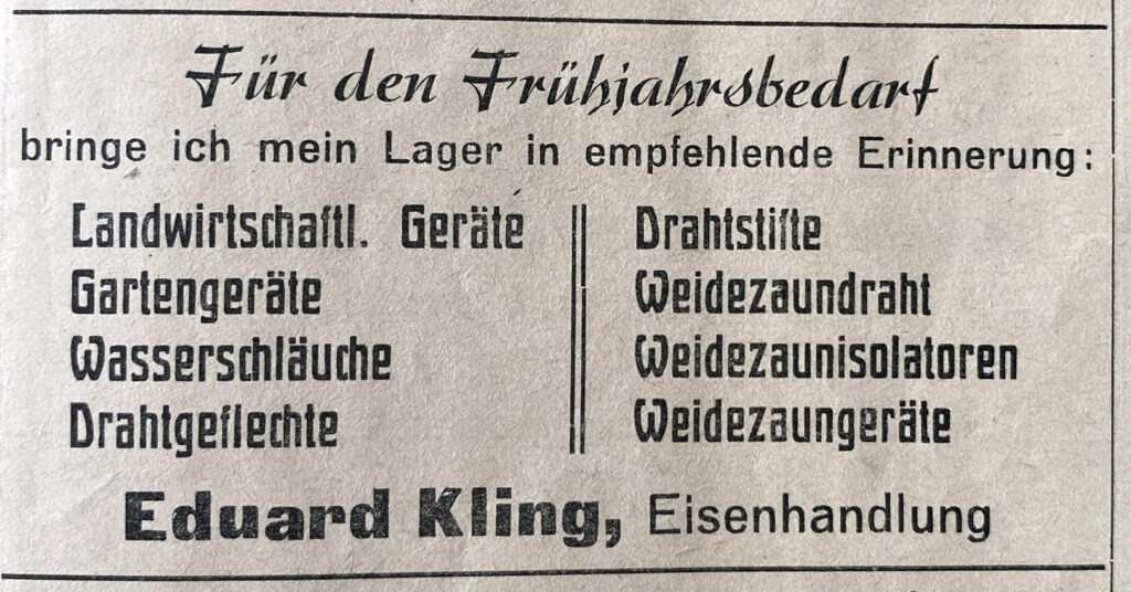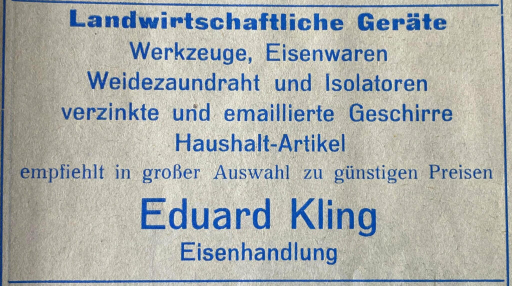 Eisenhandlung Kling 1933.