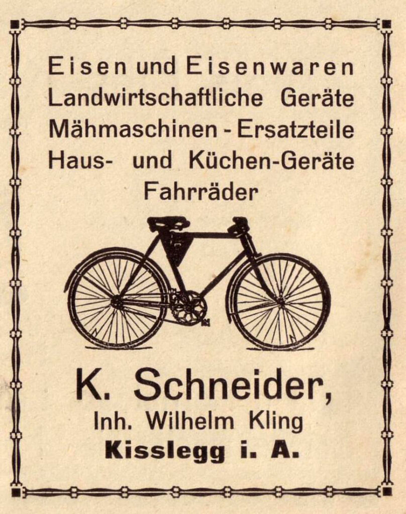 Anzeige im „Kißlegger Marktanzeiger“. 1954.