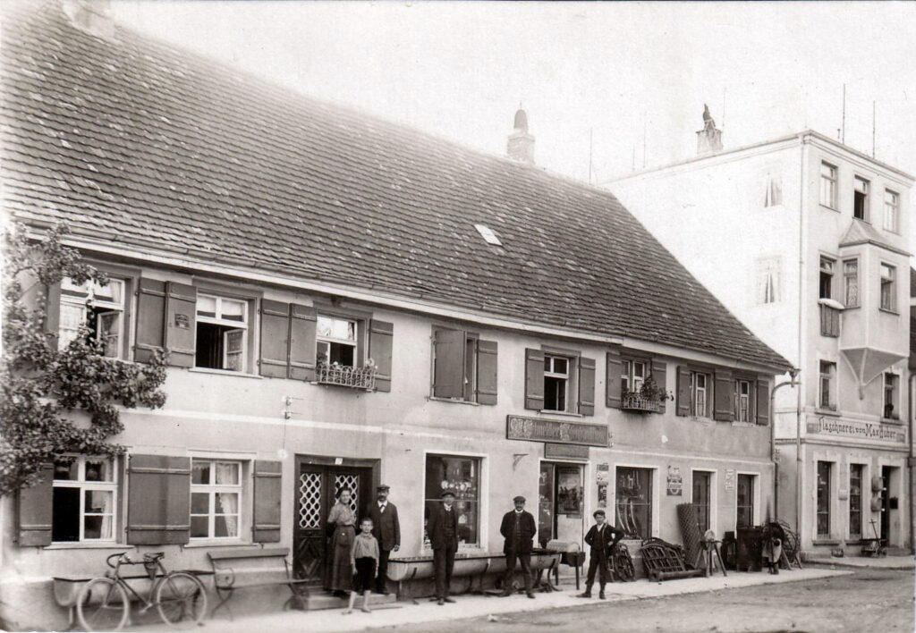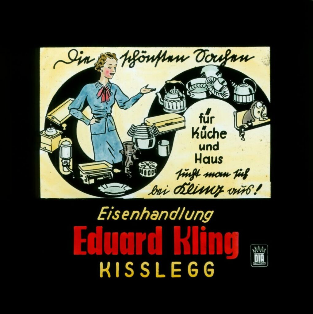 Als Ladengeschäft wurde es erstmals 1906 von Kreszentia Schneider, der Ehefrau des Schulmeisters Eduard Schneider, betrieben. Verkauft wurden dort Fahrräder, Mähmaschinen, landwirtschaftliche Geräte sowie Haus- und Küchengeräte. Später wurde der Laden von der Tochter Thekla und ihrem Ehemann Eduard Kling übernommen und das Sortiment wurde um viele Dinge des täglichen Bedarfs erweitert. Schwerpunkt lag auf den Eisenwaren; vom Stacheldraht über Werkzeug bis hin zur Mausefalle konnte dort alles erworben werden. Rodelschlitten, Kinderski und die passenden Skistöcke fand man hier genauso wie Luftgewehre und Messer. Viele Haushaltsartikel wie Töpfe und Pfannen waren in der Auslage, Nägel, Schrauben, Haken in den unzähligen kleinen Schubladen der Wandschränke und später, als die AKO in Kißlegg produzierte, konnte man beim Kling auch Weidezaundraht, Isolatoren und Weidezaungeräte kaufen. Waren, die im Laden keinen Platz fanden, wurden im 30 Meter entfernten Magazin untergebracht, wo bis heute noch der Hebekran an der Decke zu sehen ist.