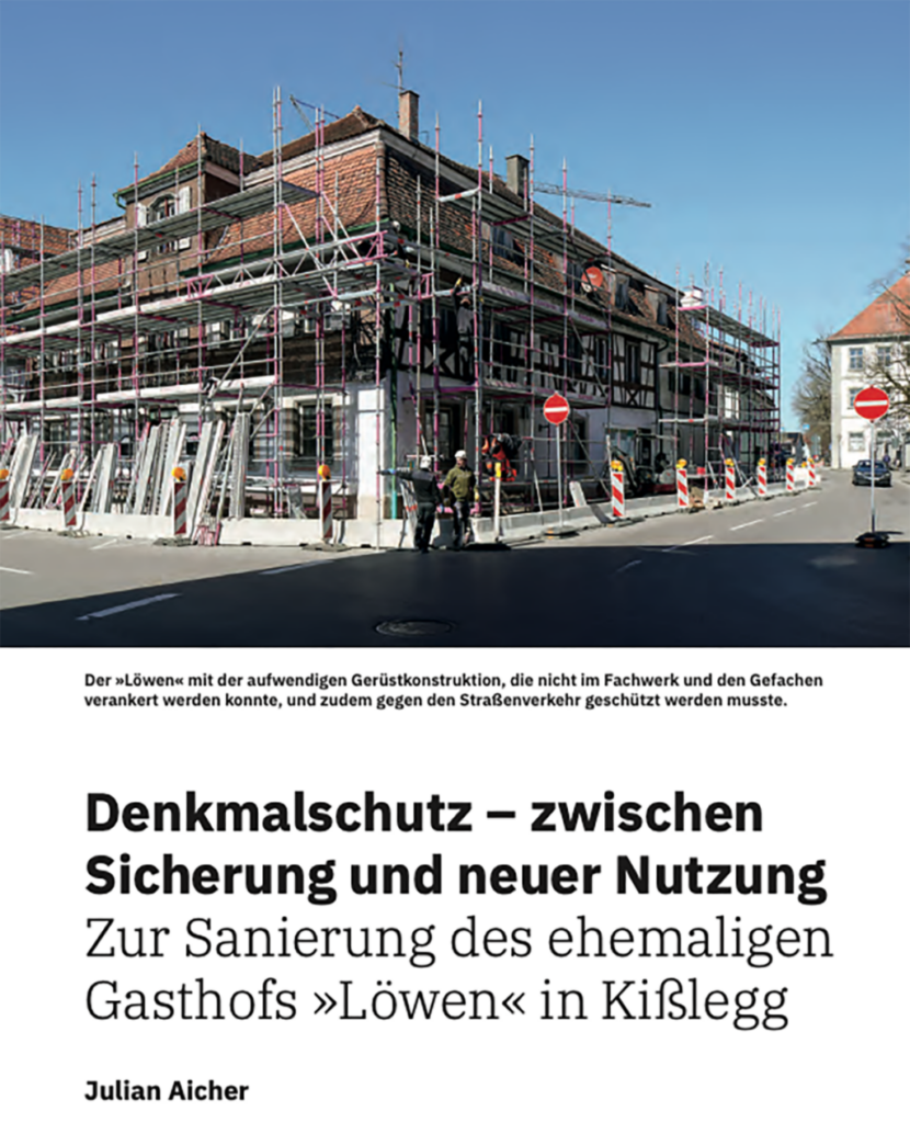Julian Aicher: Denkmalschutz – zwischen Sicherung und Nutzung. Zur Sanierung des ehemaligen Gasthofs „Löwen“ in Kißlegg. In: „Schwäbische Heimat“ 2025/4, S. 74 ff.