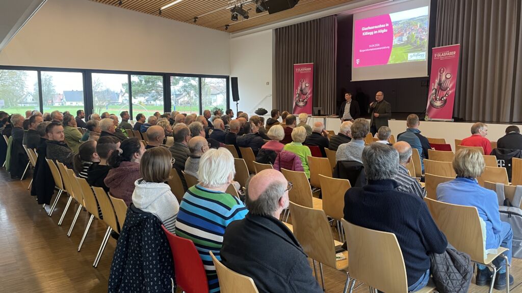 Kißlegg – Der Breitband-Ausbau in Kißlegg gewinnt deutlich an Fahrt. Ab Juni in etwa anderthalb Jahren will die Deutsche Telekom AG (DTAG) fast den gesamten Ortskern mit Glasfaser-Technik ausgerüstet haben. Wie die Planungen in Detail aussehen und wie man zu einem Anschluss kommt, erläuterte Daniel Weisshaar vor rund einhundert Interessierten am 14. April in der Schulmensa.