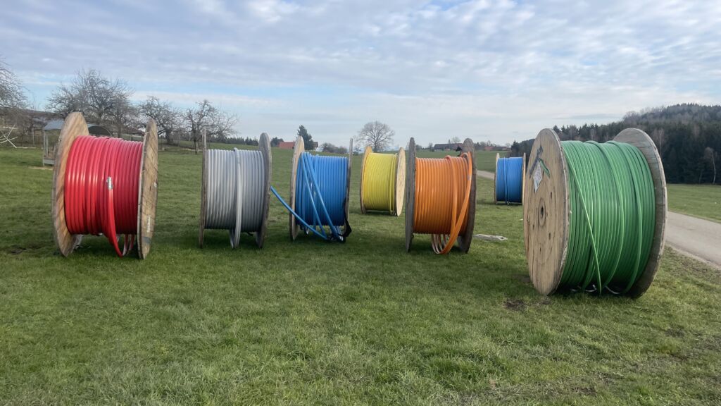 Kabeltrommeln in Unterriedgarten, einem weiteren, bislang unterversorgten „Weißen Flecken“