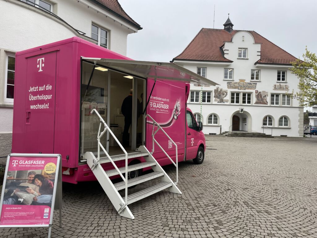 Noch bis 17. April vor dem Rathaus: das Infomobil der Telekom