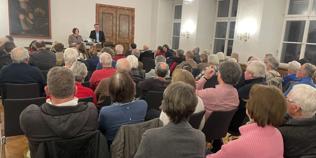 Kißlegg – Mehr brisante Aktualität geht kaum: Nur wenige Stunden vor dem Kißlegger Schlossgespräch am 28. Februar war es zu ersten Militärschlägen gegen den Iran gekommen. Rund 130 Interessierte folgten der Einladung und erörterten mit Bettina Lugk Deutschlands Rolle „in einer unübersichtlich gewordenen Welt“.