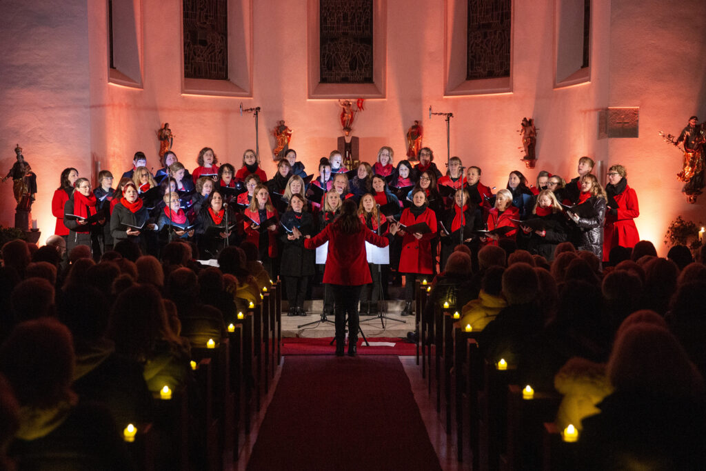 Unter der Leitung von Bettina Ohlinger, die den Chor dirigierte und deren energiegeladene und mitreißende Art den Chor sichtbar beflügelte, und Simone Haußmann, die mit ihrer Gitarre warme, tragende Klänge einbrachte, präsentierte der Chor ein sorgfältig zusammengestelltes Programm. Das Repertoire bestand aus modernen Pop-Balladen ebenso wie festlichen Klassikern. Besonders hervorzuheben ist, dass sämtliche Werke von den Chorleiterinnen arrangiert wurden – ein bemerkenswerter Einsatz, der dem Konzert eine charakteristische und individuelle Note verlieh.