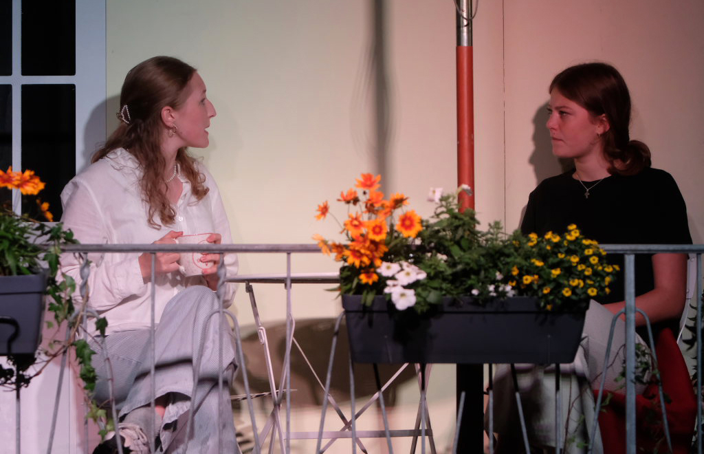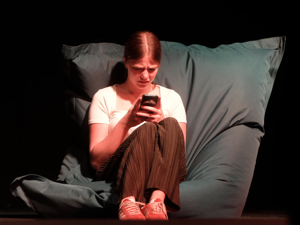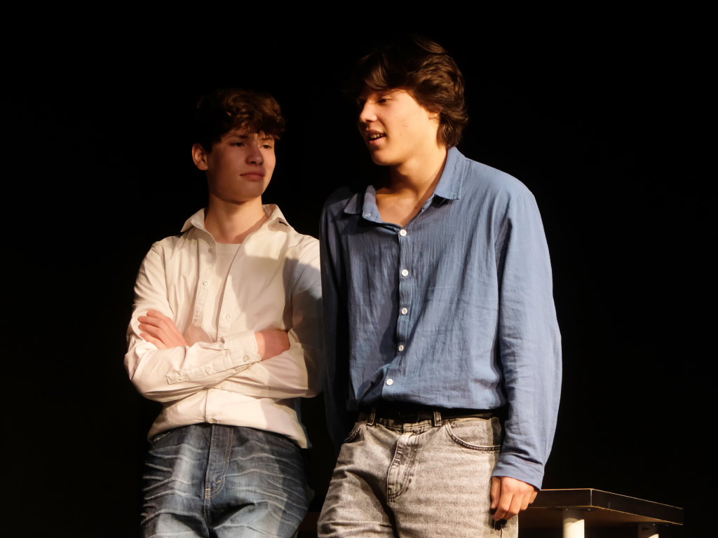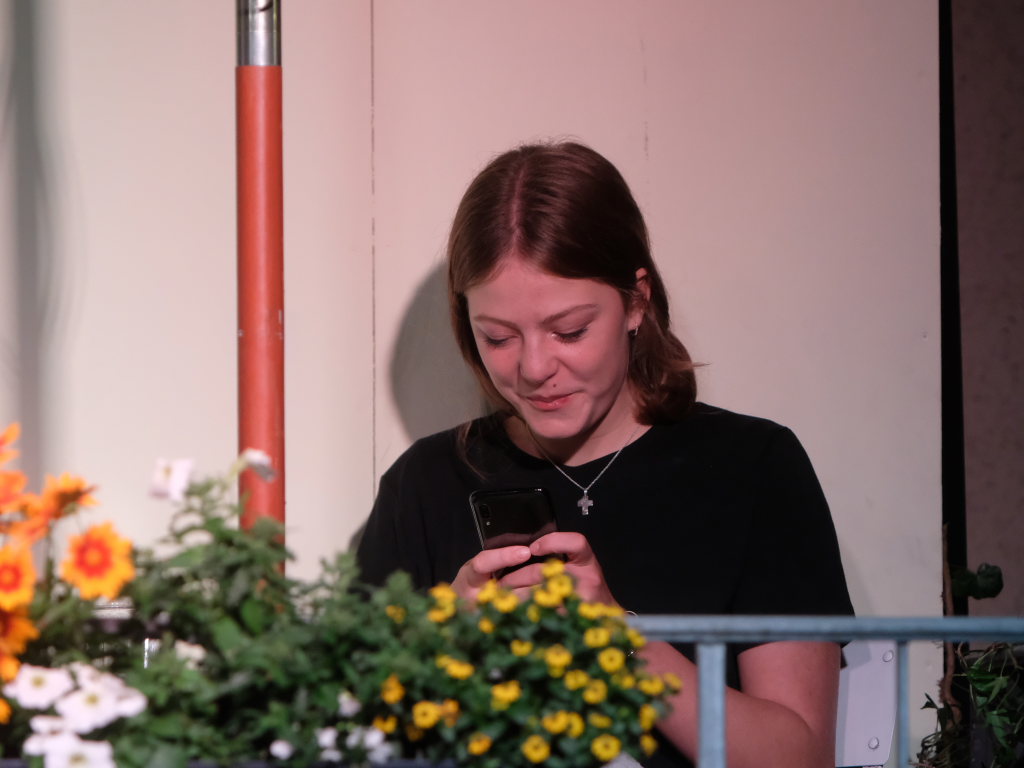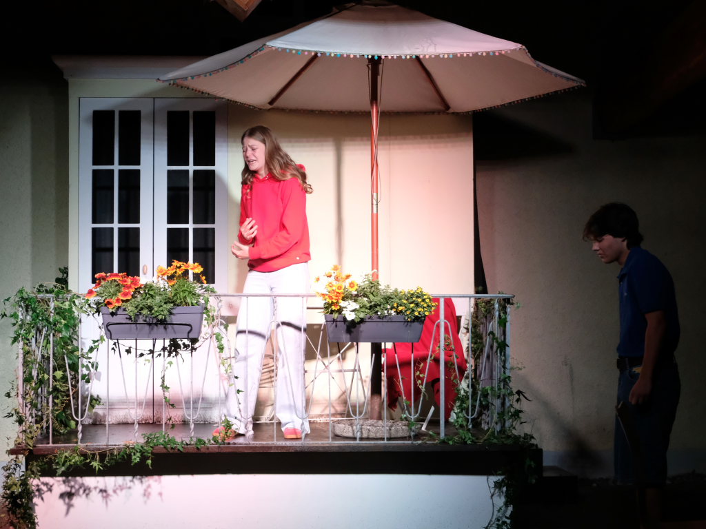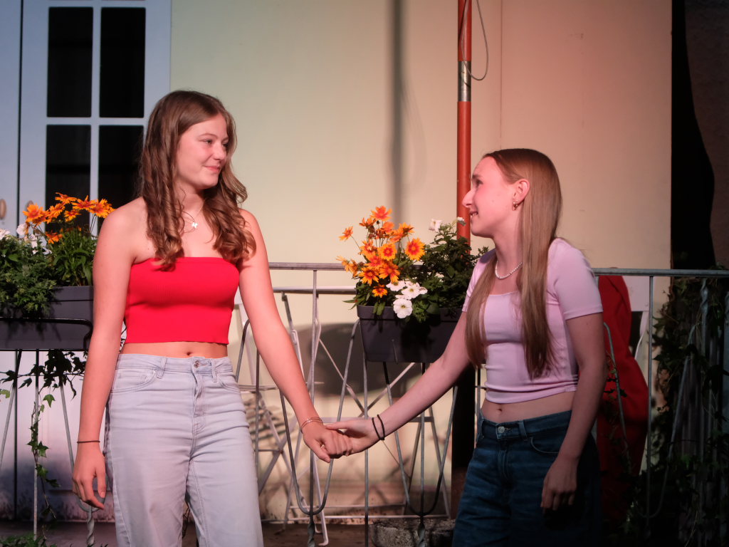 Zum Inhalt: Romeo (Leo Halder) und Julia (Leonie Oberhofer) begegnen sich in der Immenrieder Fassung nicht im alten Verona, sondern inmitten digitaler Blasen, Social-Media-Machtspiele und politischer Selbstdarstellung im Digital-Zeitalter. Die Clans der Montagues und Capulets tragen ihre Feindschaft nicht mit den Waffen der damaligen Zeit, sondern hin und wieder mit den Fäusten, aber vor allem mit Algorithmen, Fake-News und öffentlichem Druck aus (siehe die Trump´schen USA). Doch die Liebe zwischen den beiden Jugendlichen bringt plötzlich auch hier festgefügte Gegensätze ins Wanken.