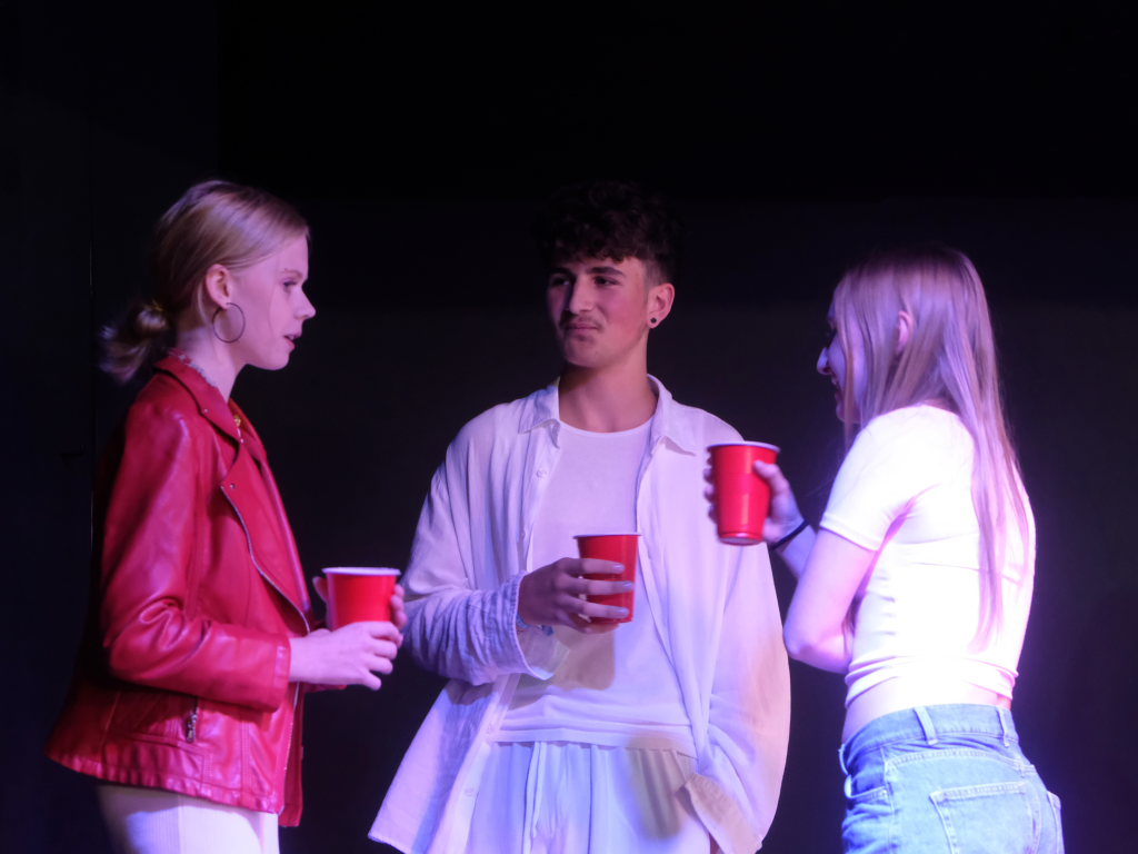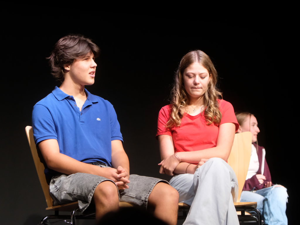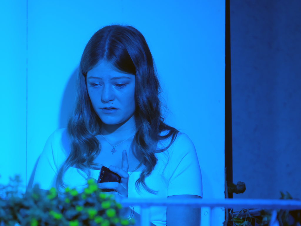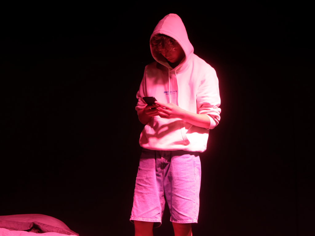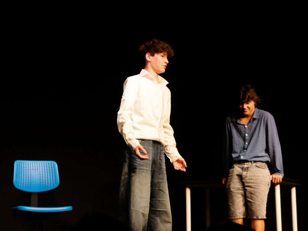 Zum Inhalt: Romeo (Leo Halder) und Julia (Leonie Oberhofer) begegnen sich in der Immenrieder Fassung nicht im alten Verona, sondern inmitten digitaler Blasen, Social-Media-Machtspiele und politischer Selbstdarstellung im Digital-Zeitalter. Die Clans der Montagues und Capulets tragen ihre Feindschaft nicht mit den Waffen der damaligen Zeit, sondern hin und wieder mit den Fäusten, aber vor allem mit Algorithmen, Fake-News und öffentlichem Druck aus (siehe die Trump´schen USA). Doch die Liebe zwischen den beiden Jugendlichen bringt plötzlich auch hier festgefügte Gegensätze ins Wanken.