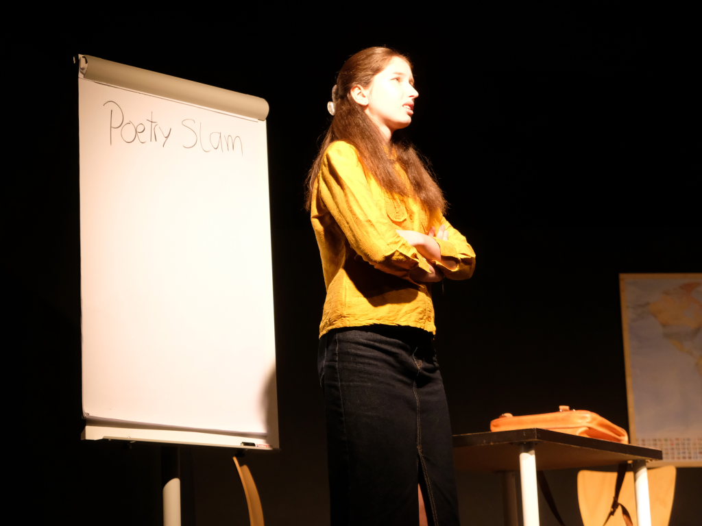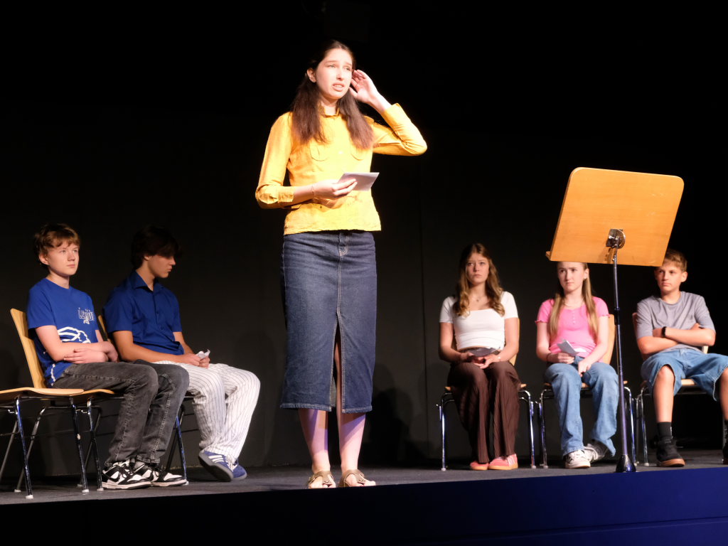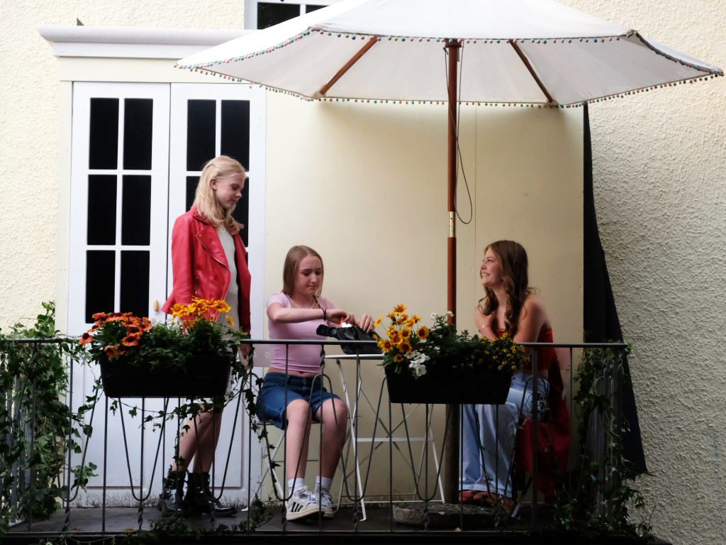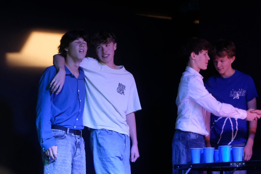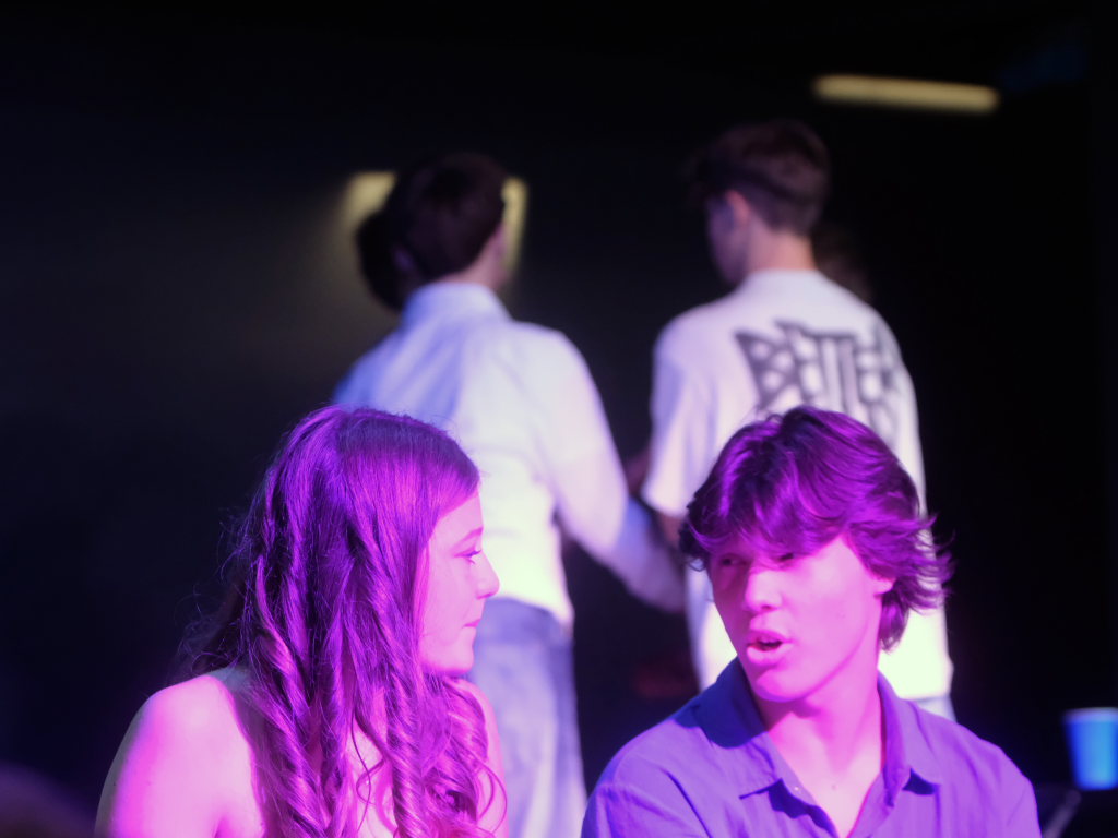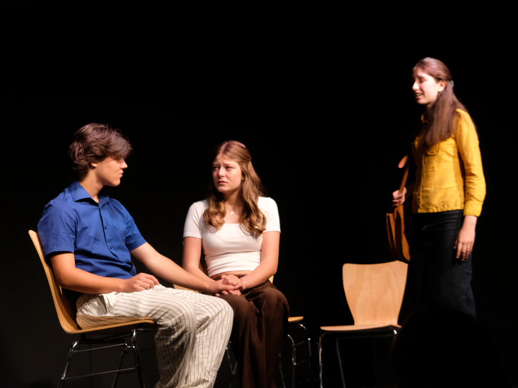 Zum Inhalt: Romeo (Leo Halder) und Julia (Leonie Oberhofer) begegnen sich in der Immenrieder Fassung nicht im alten Verona, sondern inmitten digitaler Blasen, Social-Media-Machtspiele und politischer Selbstdarstellung im Digital-Zeitalter. Die Clans der Montagues und Capulets tragen ihre Feindschaft nicht mit den Waffen der damaligen Zeit, sondern hin und wieder mit den Fäusten, aber vor allem mit Algorithmen, Fake-News und öffentlichem Druck aus (siehe die Trump´schen USA). Doch die Liebe zwischen den beiden Jugendlichen bringt plötzlich auch hier festgefügte Gegensätze ins Wanken.