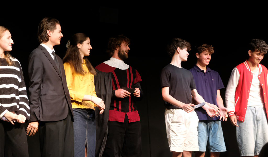 „Die Schauspielertruppe ist mega, obwohl fast alle neu dabei sind“, sagen Droth und Neff unisono, denen die Arbeit mit den jungen Schauspielern im Alter von 13 bis 16 Jahren riesigen Spaß macht. „Wir wollten mit der Inszenierung diesen Stoff jungen Menschen in ihrer Sprache zugänglich machen, haben uns aber dennoch an den Ablauf gehalten.“ Wie aus der Zeit gefallen wirkt daher der Auftritt von William Shakespeare alias Robert Keck im klassischen Gewand zu Beginn des Stückes. Aber er verkörpert mit seinem Monolog das Bindeglied zwischen dem Drama des englischen Dichters und der zeitgenössischen Adaption des Duos Neff/Droth.