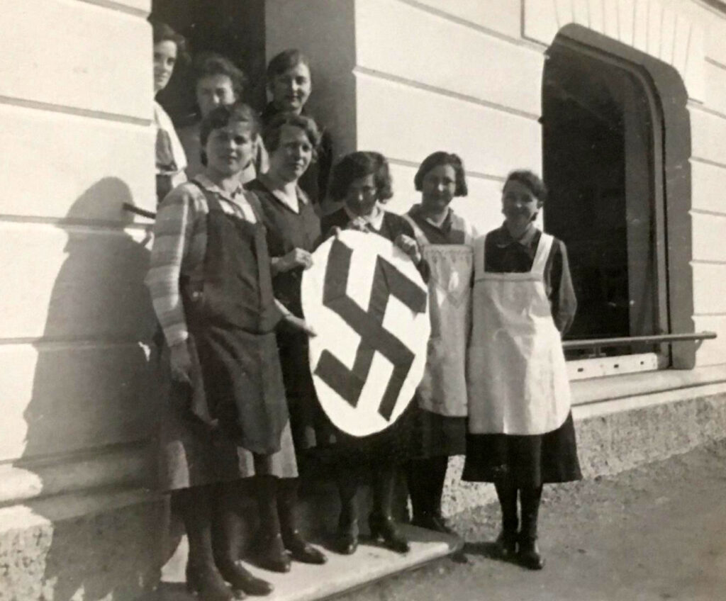 Im Dritten Reich wurden in dem Haus unter anderem Hakenkreuzfahnen genäht. Undatierte Aufnahmen (nach 1939).
