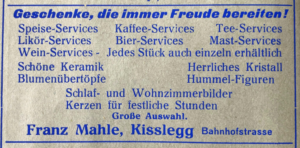 Später wurde im Keller des Hauses eine umfangreiche Leihbücherei eingerichtet, wo sich die Kißlegger Bevölkerung mit Lesematerial eindecken konnte.