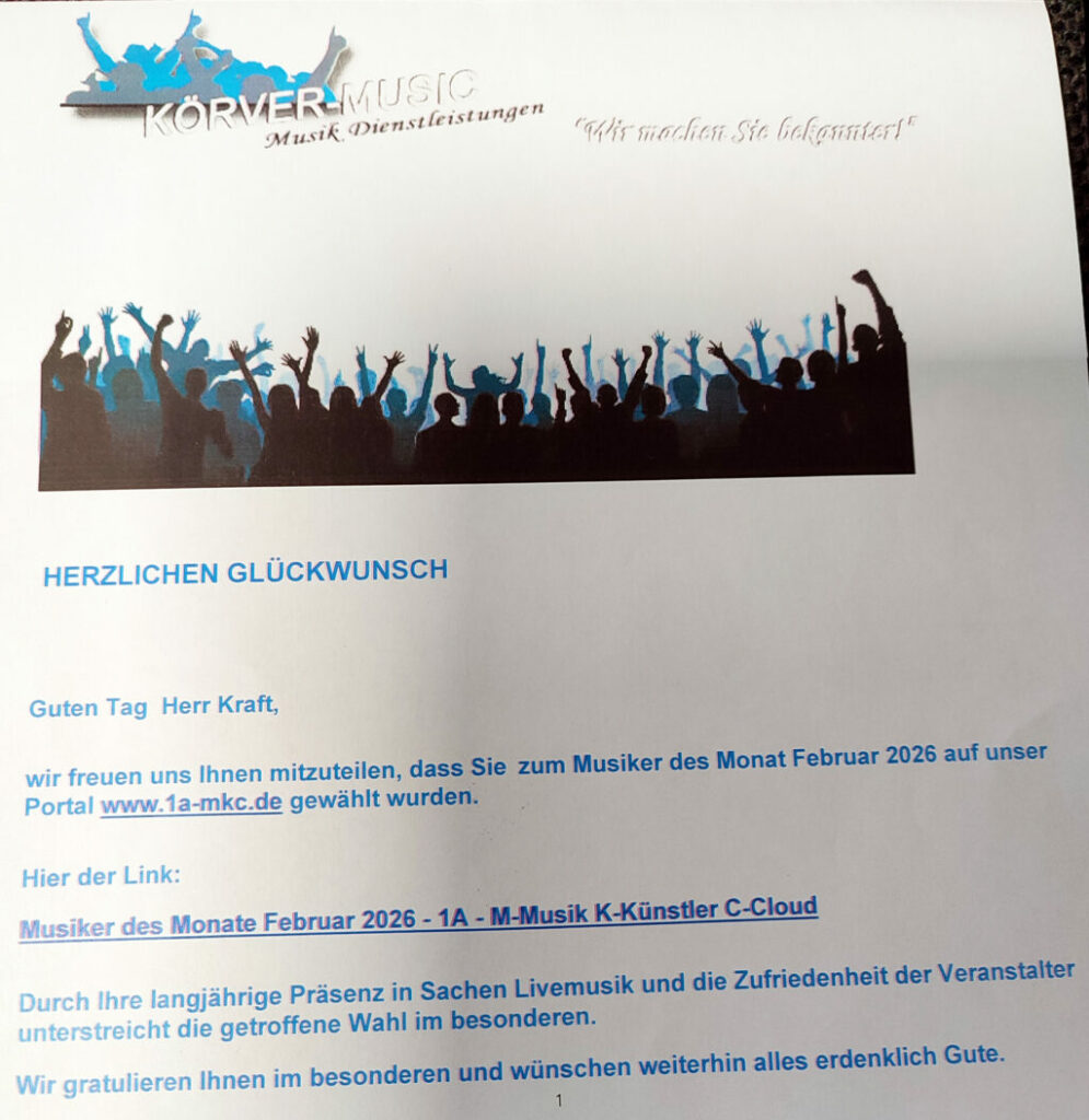 Leutkirch / Kißlegg – Eine frohe Meldung kommt von Musiker, Buchautor und Hobbykoch Reinhold Kraft. Die Künstler-Agentur Körver Music, bei der er eingeschrieben ist, hat ihm mitgeteilt, er sei zum „Künstler des Monats“ gewählt worden. „Das freut ich mich sehr“, sagt Reinhold Kraft, der seit 15 Jahren – nach einem Schlaganfall – nur noch mit der linken Hand klavierspielen kann. Er hat sich diese Fähigkeit alleine angeeignet und darüber ein Buch geschrieben sowie eine Homepage gestaltet.