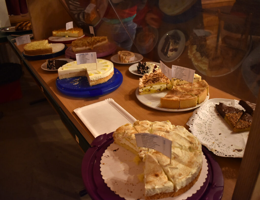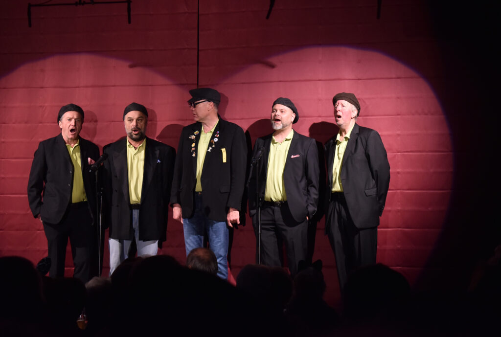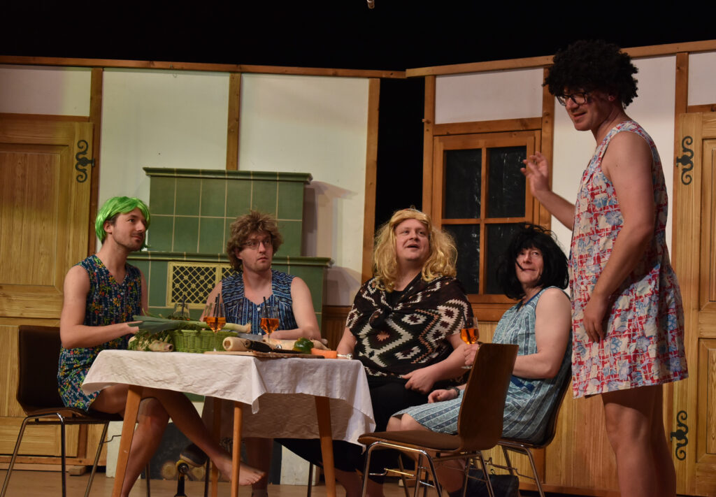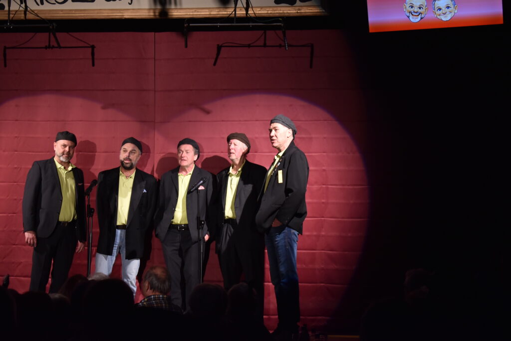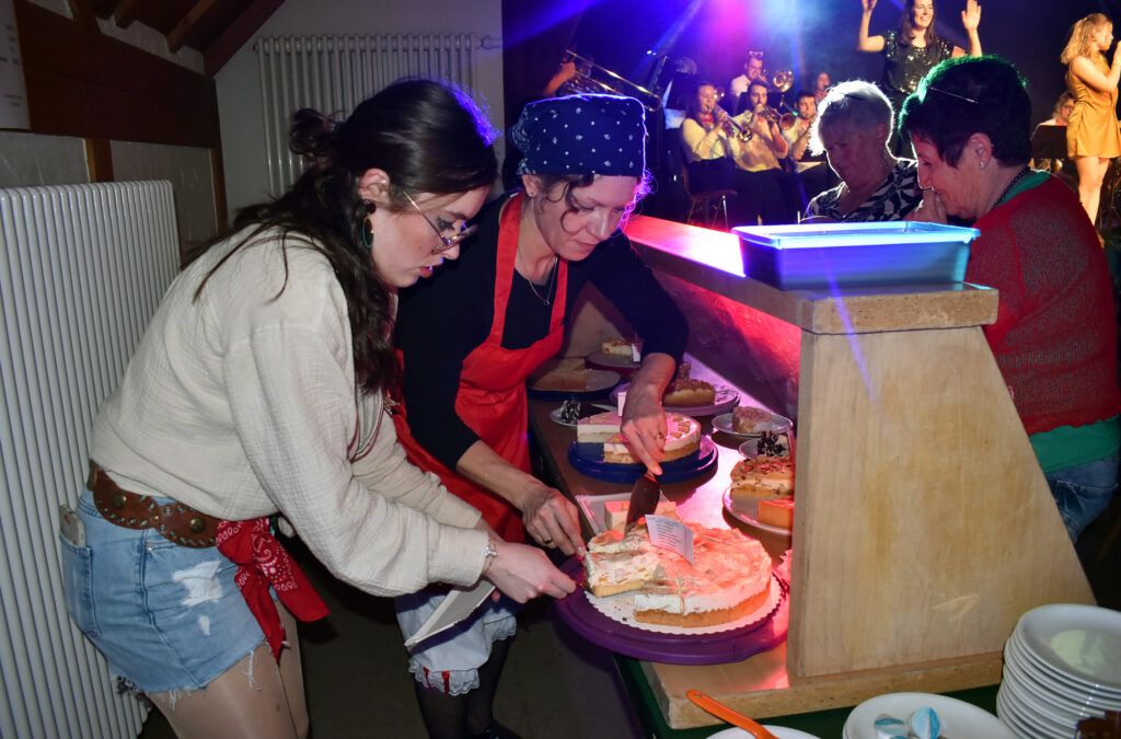Sehr zum Schmunzeln ist der Benimm-Kurs, wobei ein sehr legeres Paar lernen soll, wie man sich bei einem Dinner benimmt. Der Hummer ist noch nicht durch, das Essen und die Manieren ein Fiasko. Dann kommen die AK Bellos, die schönen Jungs, mit den noch schöneren Stimmen. 2026 feiern sie ein Jubiläum, sie sind seit 30 Jahren fester, bekannter Bestandteil der Unterzeiler Musikbälle. Unter Leitung von Markus Kieble, zudem Dirigent der MK Schloß Zeil, unterhalten die fünf Männer mit lustigen, mehrstimmigen Liedern. Sinnige Texte wie „Anna, schlupf ma ananand na“ kommen zu Gehör. Es gibt immer viel Applaus nach den Szenen, in einer Pause kann man sich leckere Kuchen und Torten holen, wie immer bei den beiden Nachmittagsveranstaltungen.