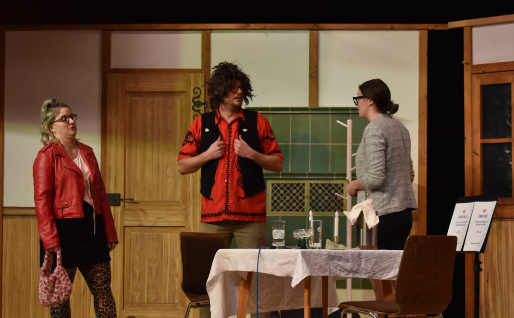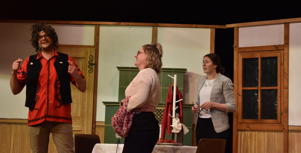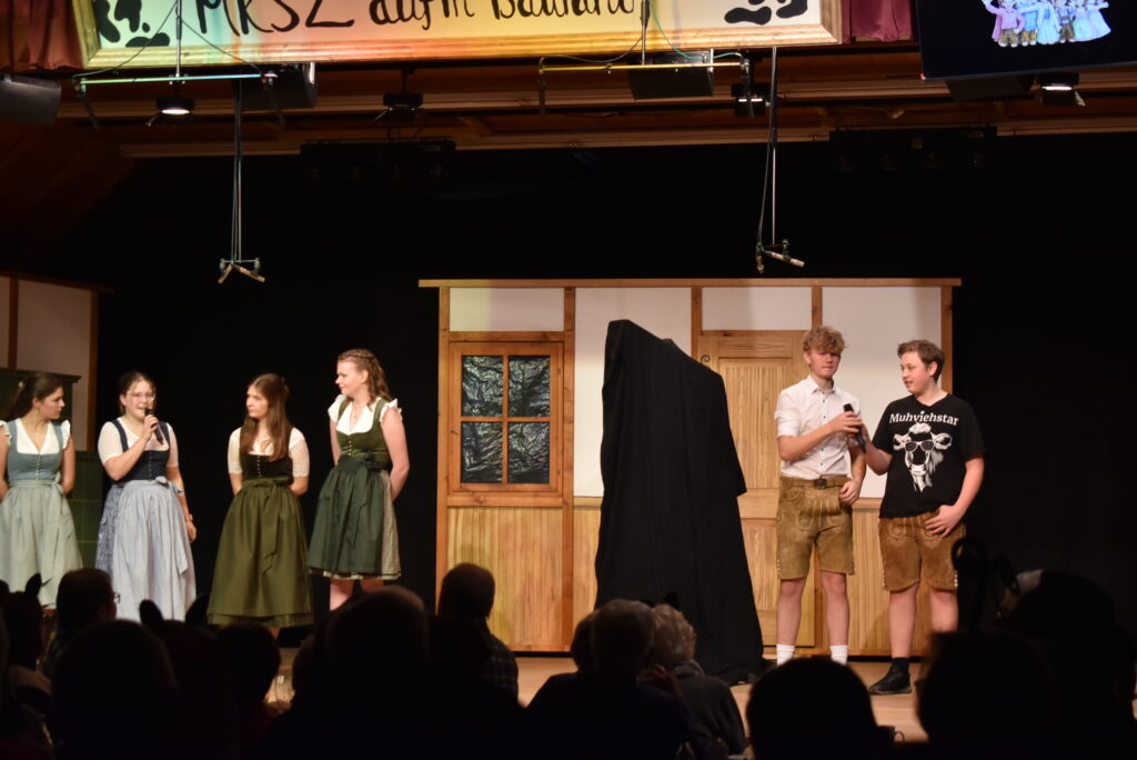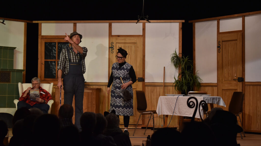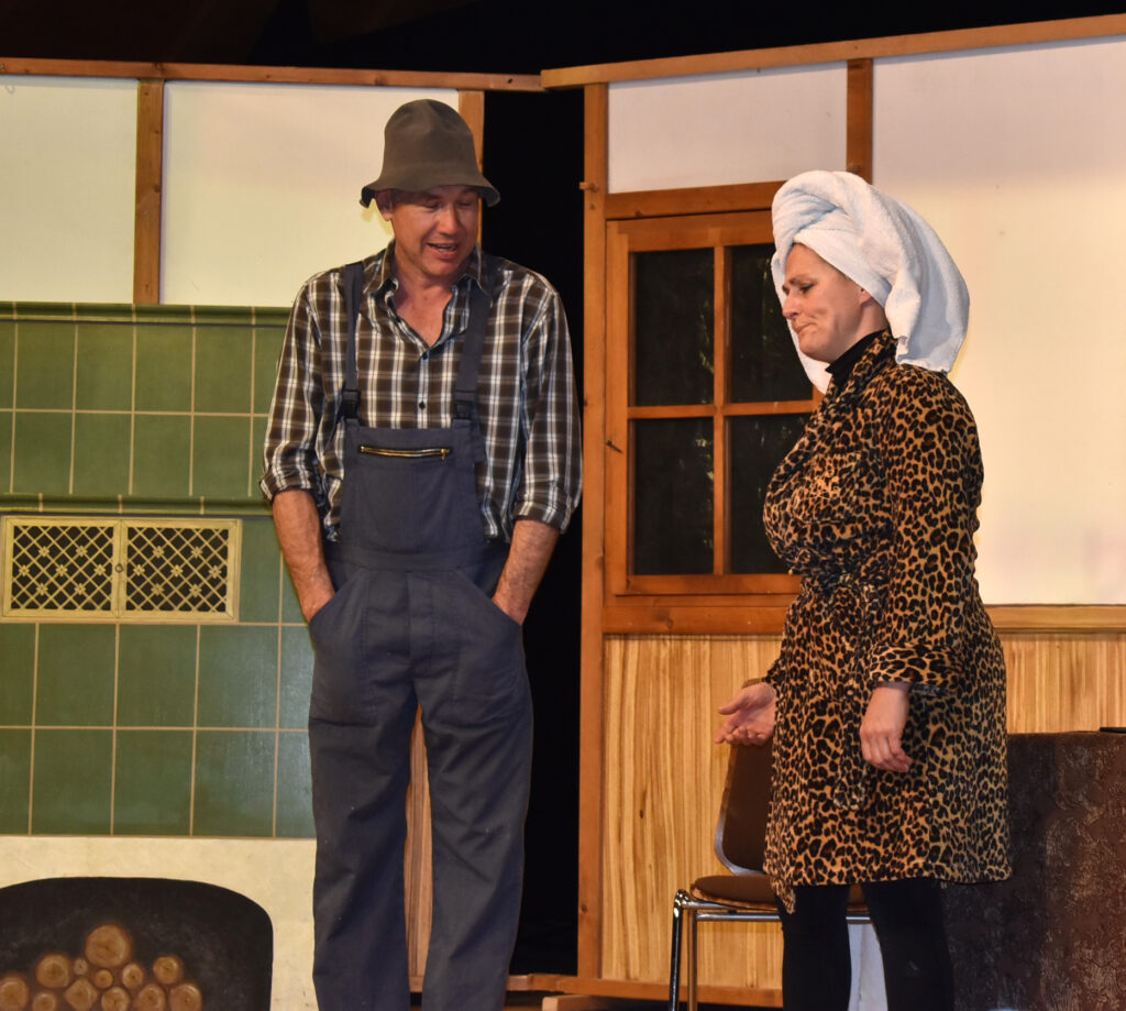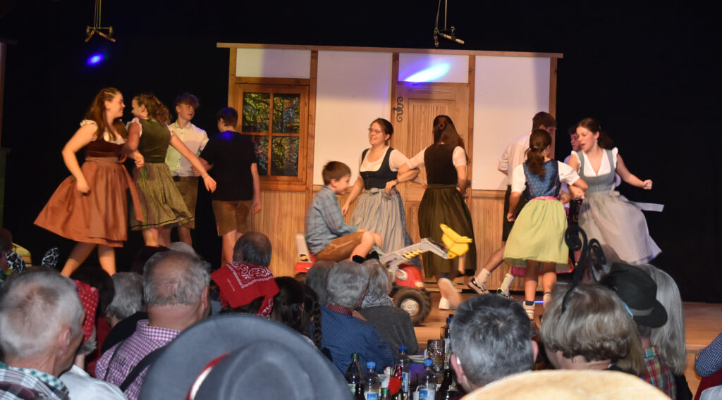 Das Theater auf dem Zeiler Bauernhof beginnt in passender Kulisse. Moderatorin Christa Kloos führt apart durchs Programm. Die Protagonisten spielen ihre Rollen sehr authentisch, ob Landwirt, Bäuerin oder als Gäste aus dem Norden, die dann mal den „Stall macha sottet“. Mal hochdeutsch, mal schwäbisch, bei der Verständigung „hat es Ratten“. Schließlich steht ein großes Scheunenfest bevor, alle müssen sich richten und schön anziehen, was dem einfachen Bauern gar nicht leicht fällt.