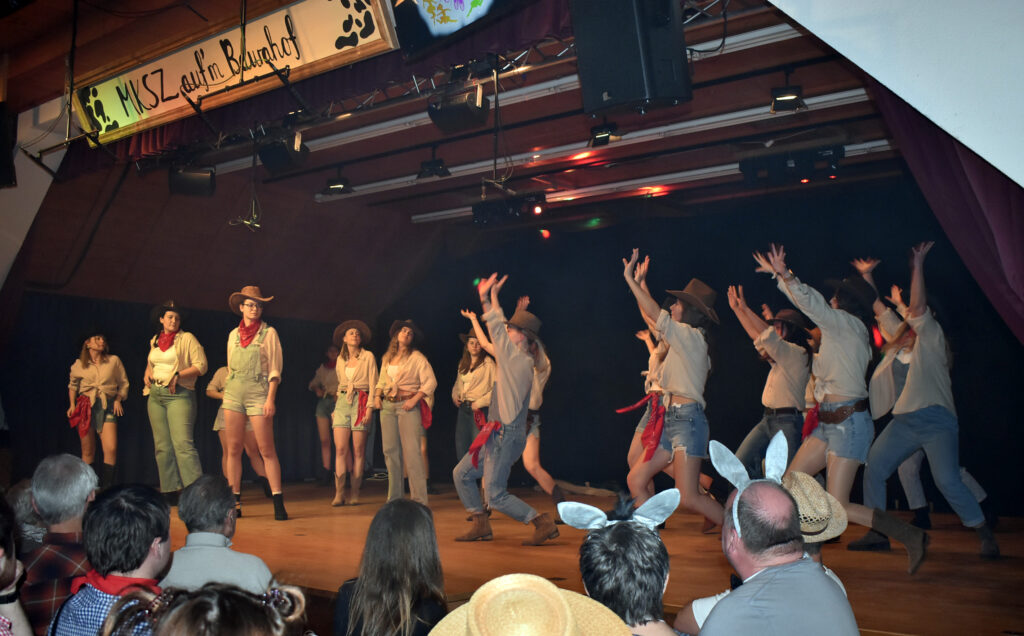 Unterzeil – Sieben Fasnetsbälle, mindestens 1700 Besucher, drei Stunden Power-Programm mit rund 40 Akteuren, viel Musik und Gesang, Sketche und beste Verpflegung – so lautet das Resümee der legendären Zeiler Musikbälle, zu der seit mehr als 40 Jahren die Musikkapelle Schloß Zeil einlädt. So war auch der letzte Ball-Tag am vergangenen Samstag (7.2.) rappelvoll, erst nachmittags der Seniorenball, ab 20.00 Uhr die Abendvorstellung, ein Kraftakt für alle Teams, auf der Bühne und rund um den Service. Man spürt sofort: Allen macht es Riesenspaß zu unterhalten und zu bewirten. Das Publikum fühlt sich gut aufgehoben, in der wiederum schön dekorierten Halle im Feuerwehrhaus Unterzeil, gemäß dem Motto: „Landwirtschaft“.