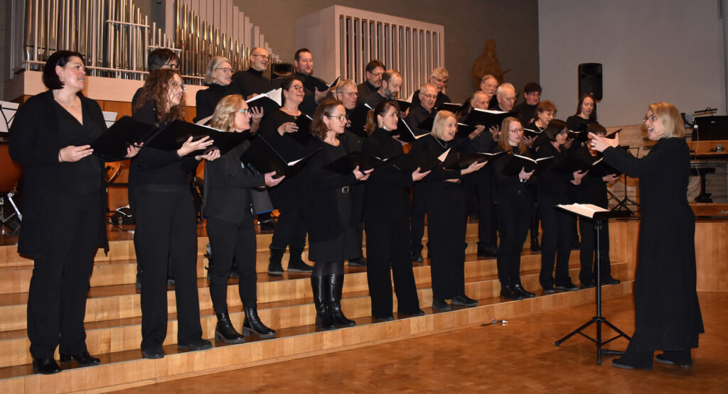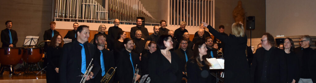 Mit langem Applaus dankte das Publikum allen Mitwirkenden. Das Miteinander von Cantabile Leutkirch und Brass Band A7, ergänzt durch Orgelspeil, alles unter der Leitung von Gertrud Hiemer-Haslach bot ein beeindruckendes, bleibendes Musikerlebnis.