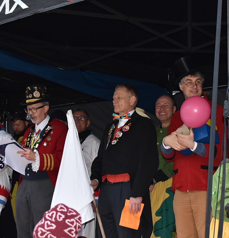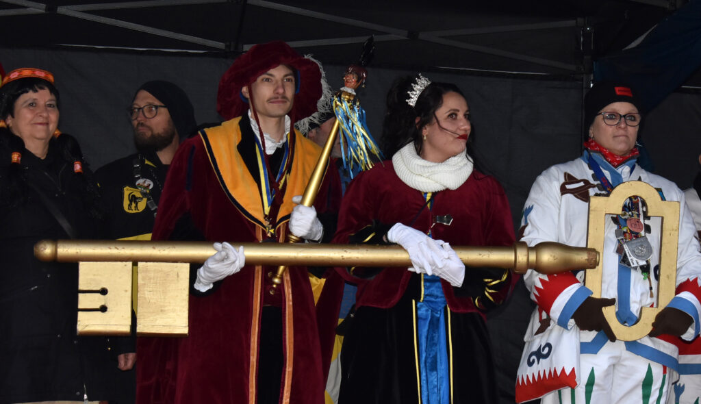Das wichtigste Symbol der Macht, der Rathaus-Schlüssel, liegt in Händen der Narren.