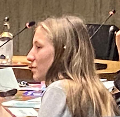 Nach dem Bericht des Stadtoberhaupts gibt Patricia Burciu (Bild) wieder, was sie als Jugendgemeinderätin während der vorletzten Sitzung des „normalen“ Gemeinderats erfahren hat. Worte wie Feuerwehr, Gewerbegebiet, Naturschutzgebiet, Grundwasserschutz, Kinderbetreuung, Schülerbetreuung und Notstrom wählt sie dabei. Anschließend fasst Oberbürgermeister Henle Ergebnisse der „gestrigen Sitzung“ (9.2.) zusammen. Da erwähnt er unter anderem ein Gebäude in der Innenstadt, das die Rathausverwaltung erwerben wolle, den Bericht des Behindertenbeauftragten und des Energiebündnisses, das geplante Gewerbegebiet Heidrein und die Elektrifizierung der Bahnstrecke Kißlegg-Wolfegg. Sei sie in Betrieb, könnten die Züge dort schneller fahren. Henle zu dem Bahnvorhaben: „Wenn alles gut läuft, dann ist das 2040 fertig.“