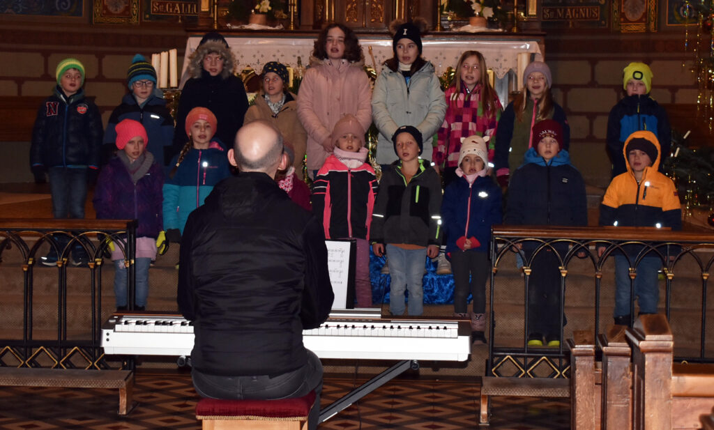 Wuchzenhofen – Viele Besucher eilten am 23. Januar zur Pfarrkirche in Wuchzenhofen, um Chorgesang und Gebeten in der Reihe „Abendklänge“ zu lauschen. Der Kinderchor „Little Voices“ trat ohne Lampenfieber ganz engagiert auf, und sang Lieder über Jesus, der immer für die Menschen da ist. Auch der Jugendchor „The Voices“, den ebenfalls Christian Schmid aus Wuchzenhofen ins Leben gerufen hat, überzeugte mit gut einstudierten spirituellen Melodien. Schmid begleitete am Piano, Michael Mayer von der Pfarrei St. Martin Leutkirch sprach zwischen den Liedern Gebete, gab Impulse zum Nachdenken.