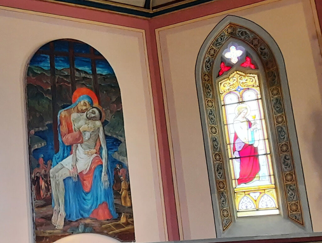 Aus einer späteren Zeit stammen die Gemälde, die eine Pietà und die Geburt Christi darstellen. Sie wurden von August Blepp erstellt, der künstlerisch dem Expressionismus zuzuordnen ist und in den 1920er‐ bis 1940er‐Jahren an als Kirchenmaler zahlreiche Spuren im Land hinterlassen hat.