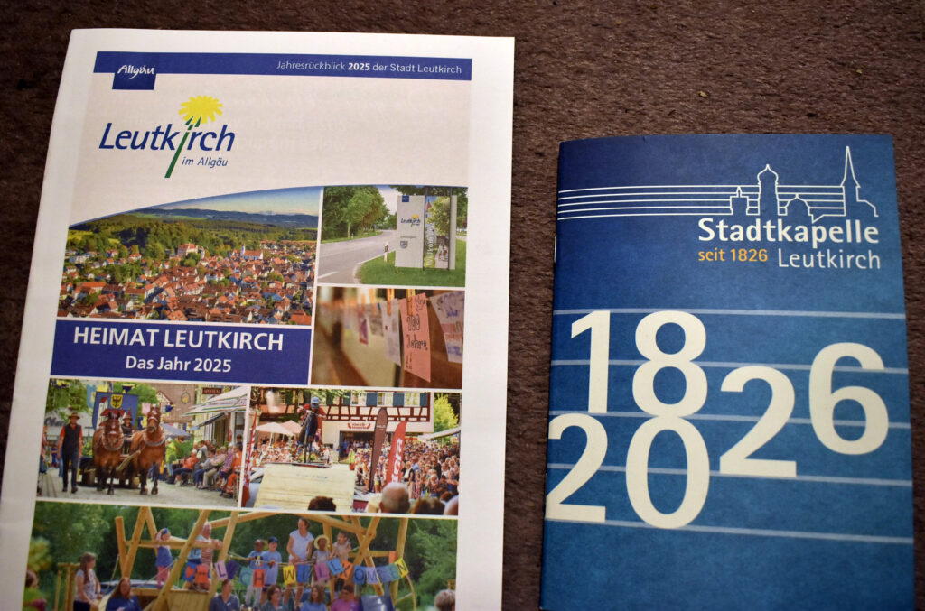 Zwei lesenswerte Broschüren: links der Jahresrückblick auf 2025, rechts die Festschrift zum 200-jährigen Bestehen der Stadtkapelle. Beide Broschüren gibt es ab Montag (19.1.) in der Touristinfo.