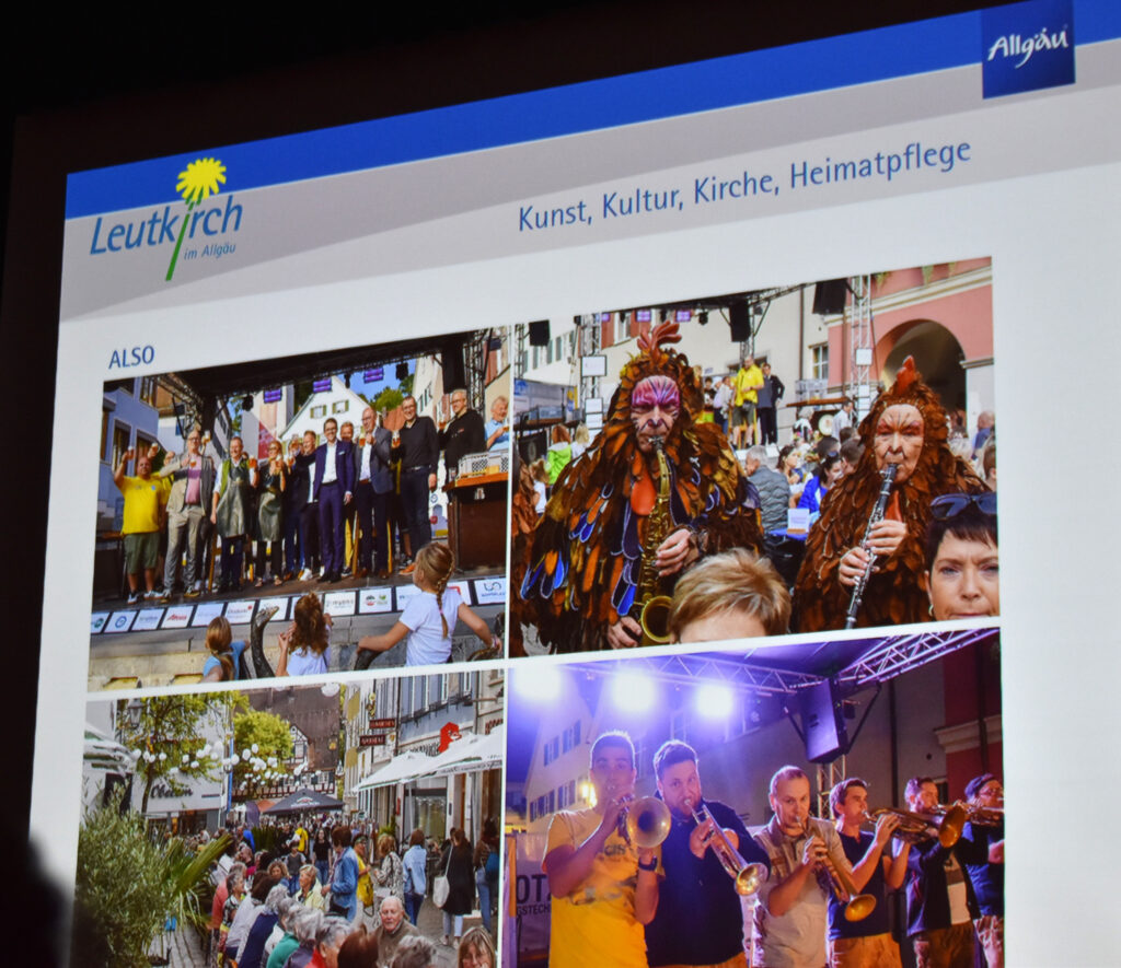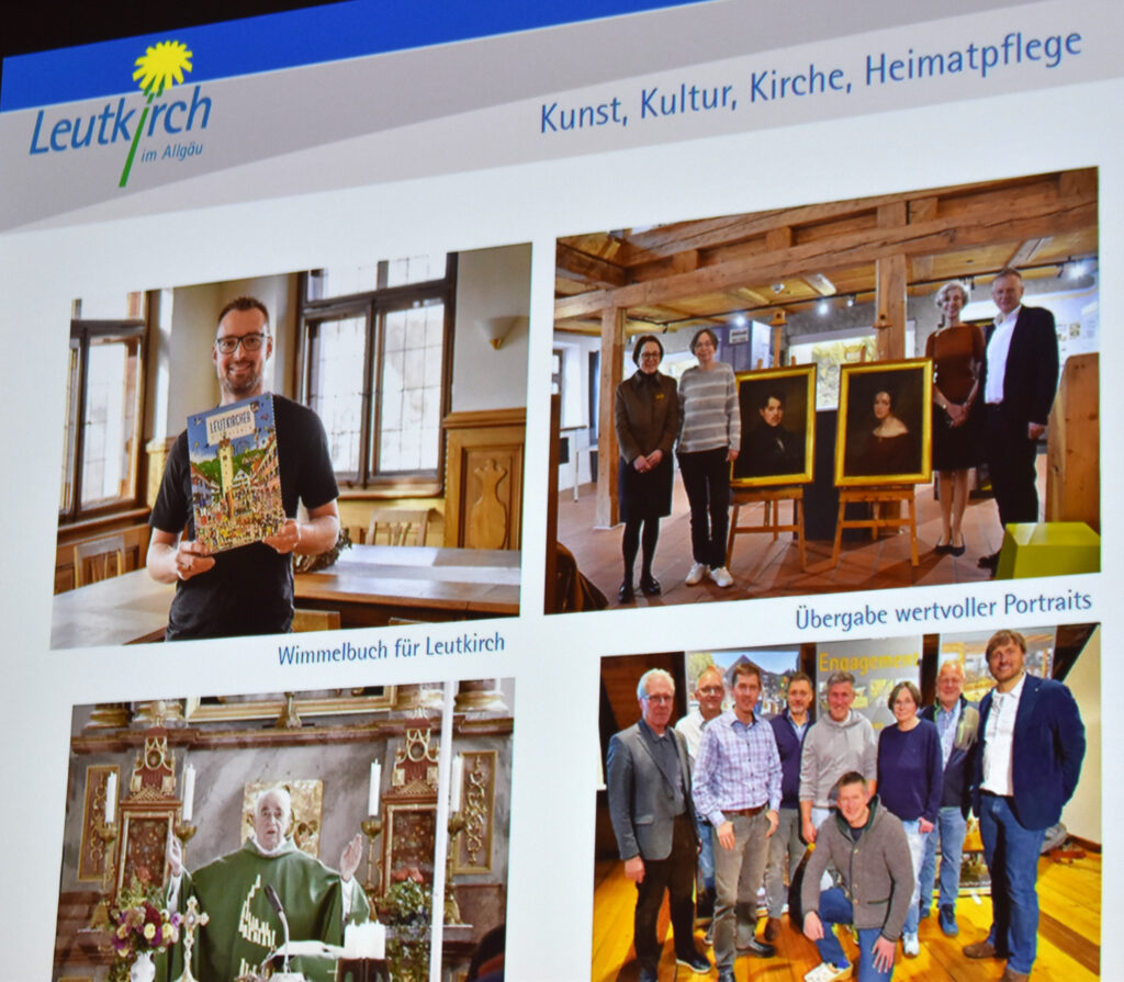 Natürlich ist auch der Rückblick auf das Jahr 2025 mit einer Power-Point-Präsentation von Thomas Stupka einer der Höhepunkte des Abends. Es war fast unglaublich, was sich alles in Stadt und Land getan hatte, viele gelungene Projekte wurden gezeigt, ebenso zahlreiche neue Firmen in Leutkirch vorgestellt, Bauvorhaben, Änderungen, Neuerungen … Den genauen Rückblick mit vielen Bildern gibt es als Broschüre ab Montag in der Touristinfo, einiges davon sei hier genannt. Es gab 230 Neugeborene, damit hat Leutkirch nun 24.691 Einwohner, inklusive den Teilgemeinden. Gelungene Feste waren unter anderem die Fasnet mit der ersten Straßenfasnet, die es heuer wieder geben wird, dann die Musiknacht, das Kinderfest, das Highmatland, der Gallusmarkt, der Weihnachtsmarkt mit Winterzauber und natürlich das Also-Festival im Sommer. Lob ging an Tobias Pflug als neuen Stadtmarketing-Profi, der vieles professionell auf den Weg bringt und gut vernetzt ist. Es gab eine Ausstellung zu 500 Jahre Bauernkrieg und Henle meinte ernst: „Wir waren noch nie so frei wie jetzt, das sollte man schätzen!“