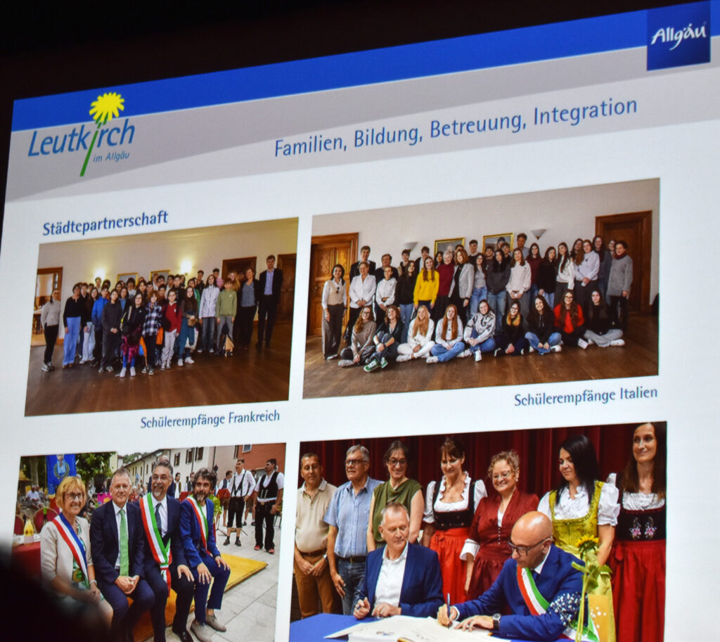 Der Partnerschaftsverein feierte 30 Jahre Freundschaft mit Castiglione, der neue und erste städtische Kindergarten „Löwenzahn“ konnte in der Neubausiedlung am Ströhlerweg eröffnet werden, Windkraftstandorte galt es zu begutachten, das Fernwärmenetz wird weiter ausgebaut, ebenso hat man den Hochwasserschutz erweitert. Es wurden nicht nur neue Wohnungen gebaut, auch etliche Firmen haben 2025 in Leutkirch gebaut oder sich niedergelassen, demnächst ist sogar die Eröffnung einer Battlekart-Anlage, die erste zwischen München und Bodensee. Wichtig war OB Henle auch das Pilotprojekt NetzLabor Allgäu, neue Gastronomie-Betriebe in der Innenstadt, der neu gebaute Grillplatz für die Jugend bei den Tennisplätzen und der Jugendgemeinderat.