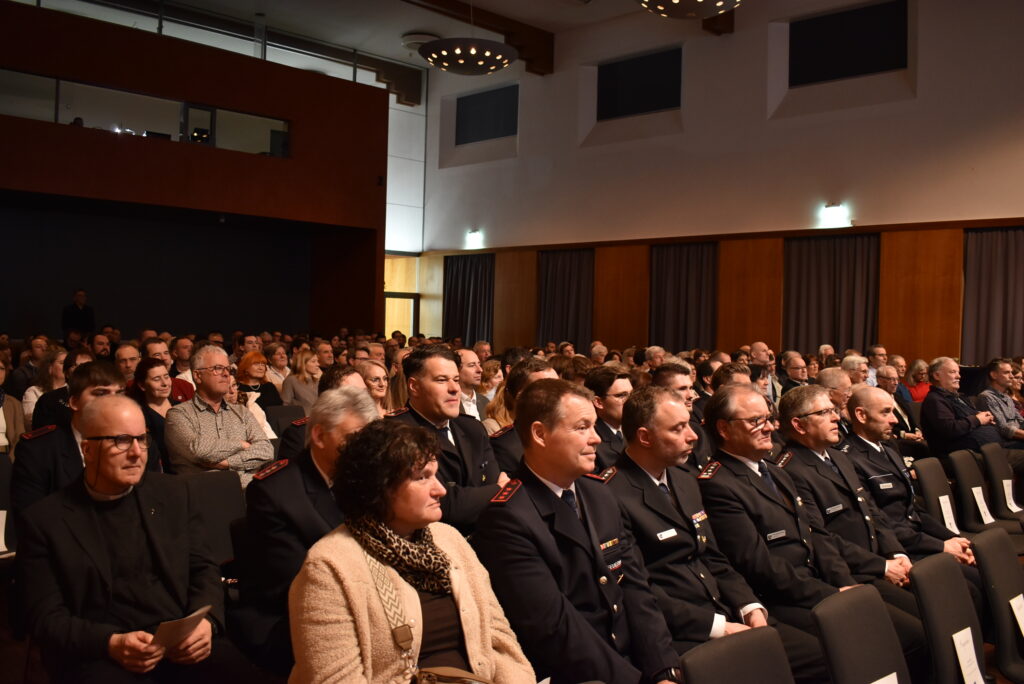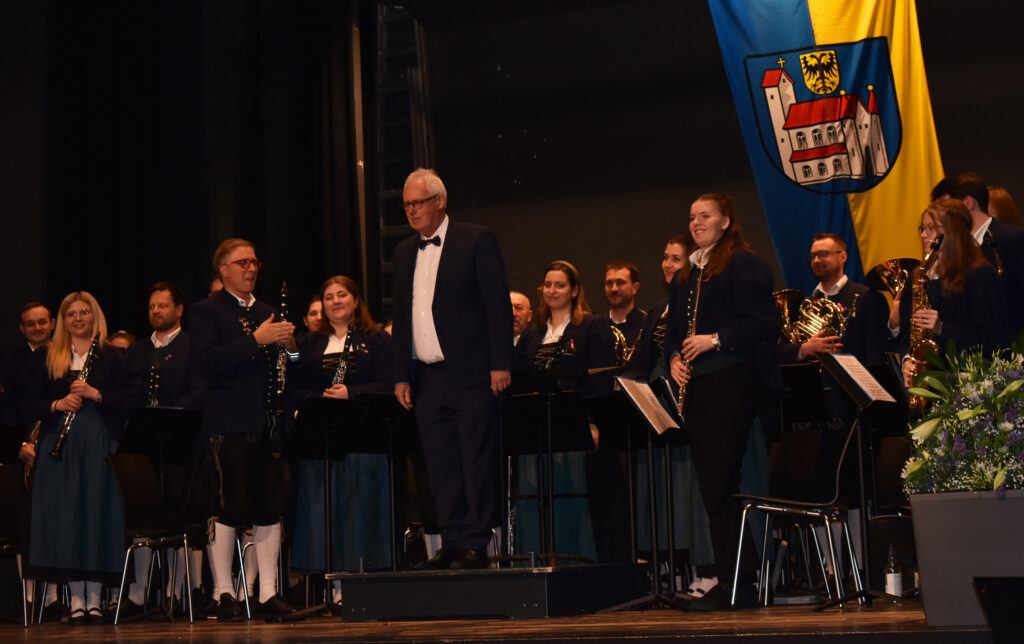 Auf der Bühne hatte die Stadtkapelle unter Leitung von Stadtmusikdirektorin Emma Geser Platz genommen und umrahmte festlich-anspruchsvoll den Abend. Die Stadtkapelle feiert 2026 ihr 200-jähriges Bestehen. „Die Festschrift liegt bereits heute Abend aus, ebenso das Heft über Leutkirch im Jahr 2025 im Rückblick, das sie gerne mitnehmen dürfen“, freute sich OB Henle und sagte die einzelnen Stücke an, wie zum Beispiel auch den Leutkircher Festmarsch.