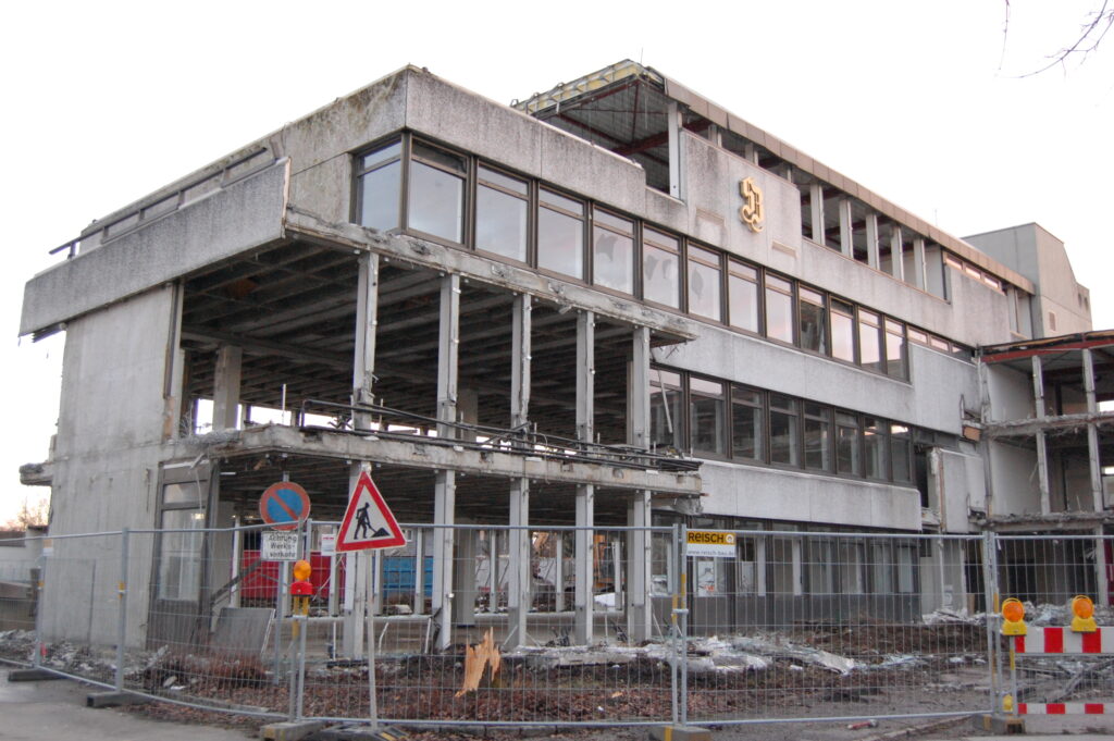 Das traurige Ende der Präsenz des Schwäbischen Verlages in Leutkirch: Abriss 2014. Heute stehen eine Seniorenwohnanlage und ein Altersheim an diesem Ort, der einst die Adresse der größten Zeitung Baden-Württembergs war (der Schwäbische Verlag – ein breit aufgestelltes Medienhaus – hat seinen Sitz heute in Ravensburg). Archivbilder: Carmen Notz