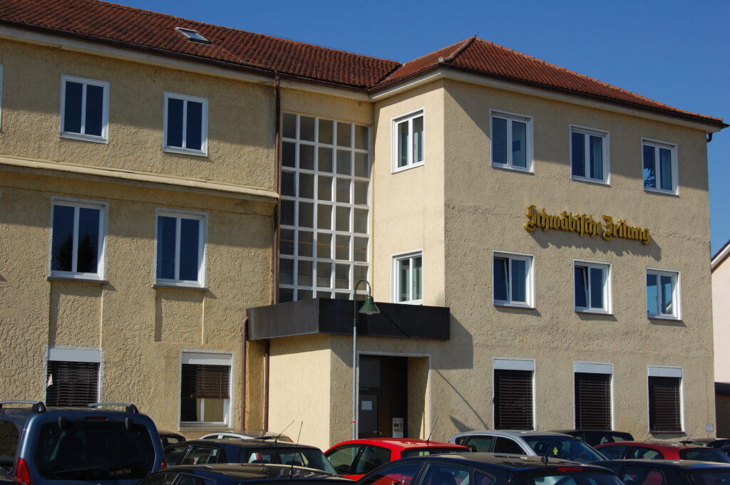 Als Carmen Notz 1976 als Auszubildende bei der „Schwäbischen“ anfing, hatte der Neubau an der Rudolf-Roth-Straße noch gar nicht gestanden. Ihr Arbeitsplatz war in der Unteren Grabenstraße (heute Fürstlich Waldburg-Zeil’sche Verwaltung). Ihre wichtigsten Lehrmeister waren der kriegsversehrte Herr Ripberger in der Anzeigenabteilung, Frau Kohlhammer im Vertrieb und Frau Palesch, die Sekretärin von Anzeigenleiter Anton Pfaff. Sie kann sich auch noch gut an den jungen Franz-Josef Wunden erinnern, der die EDV aufgebaut hatte. „Damals hat man noch mit Lochkarten gearbeitet.“ 1980, als der Neubau in der Rudolf-Roth-Straße fertig war, zog die junge Verlagskauffrau Carmen Notz dann um in die neuen Räumlichkeiten.