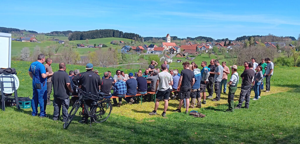 Am Samstag (19.4.) war das große Aufräumen angesagt. Nach getaner Arbeit hockten die Schaffer noch zusammen. Es sei länger gegangen, heißt es. Nach der großen Anspannung habe man einfach ausschnaufen müssen. Auch das ein echtes Gemeinschaftserlebnis. Im Hintergrund sieht man das kleine Pfarrdorf Engerazhofen, das so Großes geleistet hat. Fotos: Karin Raufeisen