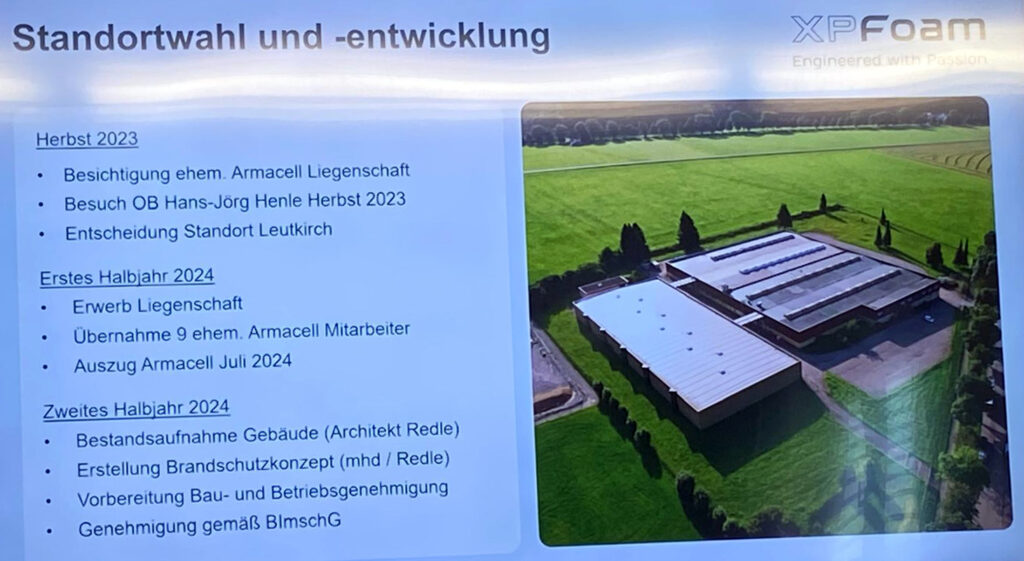 Noch wirken einige der XPFoam-Hallen im ehemaligen Armacell-Anwesen Am Bahndamm in Friesenhofen (gegenüber Fackler-Paletten) fast leer. Erste Maschinen arbeiten aber seit heute schon. „Auf 40.000 Quadratmetern Betriebsflächen entstehen maßgeschneiderte Dämmunterlagen und Zubehörprodukte für die Fußbodenindustrie – made in Leutkirch'“, so das neue Unternehmen.