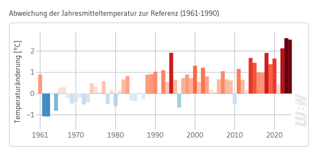 Schauen wir auf die offiziellen Daten für unsere Heimat: Das Klimaprofil für Bad Wurzach, herausgegeben vom Kompetenzzentrum Klimawandel des Landes Baden-Württemberg (LUBW), zeichnet ein unmissverständliches Bild. Die Temperatur steigt bereits deutlich an und die Prognosen sind alarmierend.