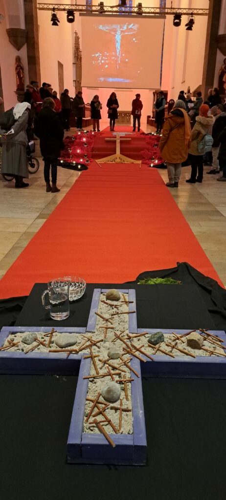 Beeindruckender Abschluss des Kreuzwegs in St. Jodok – im Vordergrund die abgelegten persönlichen Holzkreuze