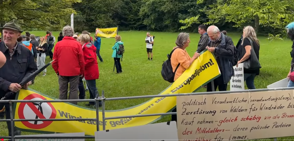 Mit Bannern wie „Windräder gefährden das Grundwasser“, „Windräder trocknen Wälder aus“, „Adel verpflichtet – Windkraft vernichtet das Europadiplom“, „Für den Erhalt unserer Natur“ wurden die Kreistagsmitglieder bei ihrer Sitzung in Wolfegg empfangen. Der friedlichen Mahnwache, zu der das Netzwerk Naturschutz Allgäu-Oberschwaben aufgerufen hatte, folgten rund 200 Freunde und Mitglieder von 17 Bürgerinitiativen mit mehr als 2100 Mitgliedern aus dem Netzwerk.