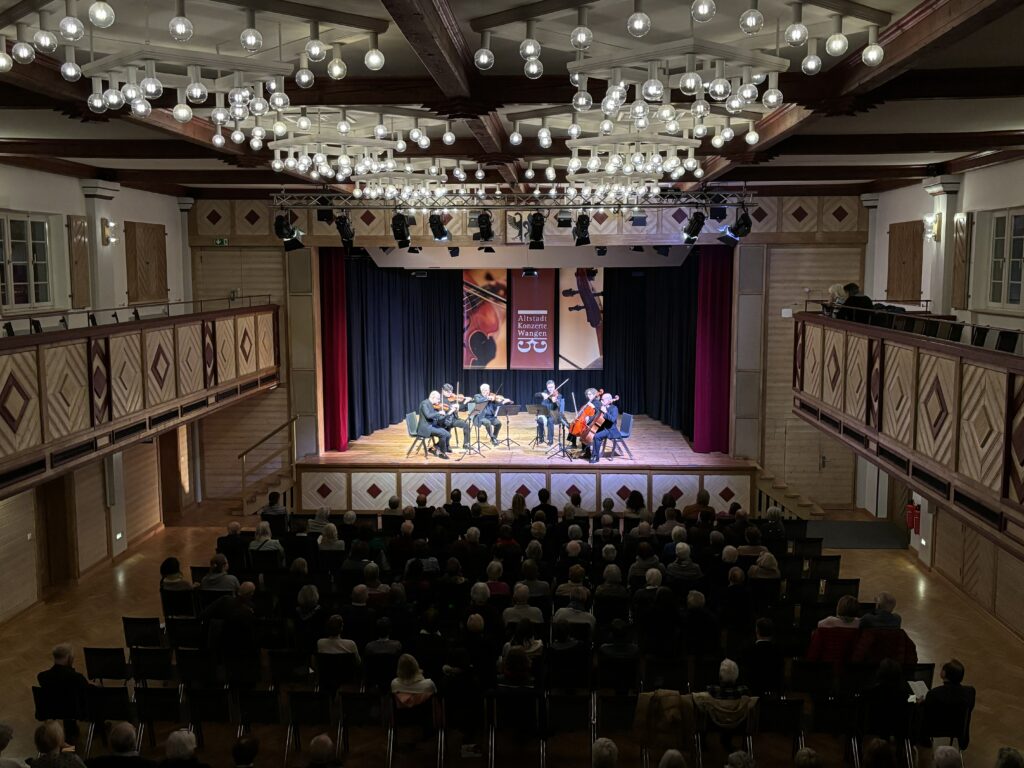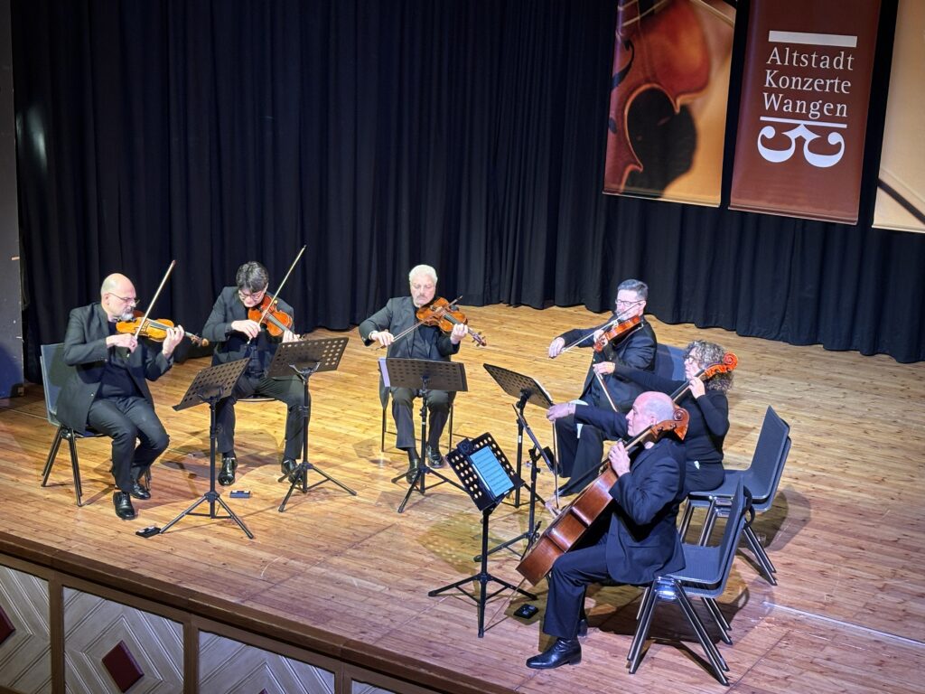 Am 22. Januar in Wangen interpretierte das Streichersextett Werke der Komponisten Luigi Boccherini, Ernst von Dohnányi und Antonín Dvořák. Im Programmheft ist von einem „einzigartigen Zusammenspiel, das von Harmonie und spürbarer musikalischer Leidenschaft geprägt ist“ die Rede. Tatsächlich füllt die Musik den Raum und lässt ihn strahlen. Zwei Stunden inklusive Pause tauchen die Zuhörinnen und Zuhörer ein in langsam „gehendes“ Tempo, das durch „schnell und lebhafte“ Begeisterung und tänzerischen Rhythmus abgelöst wird. Am Ende gibt es jeweils das große Finale.
