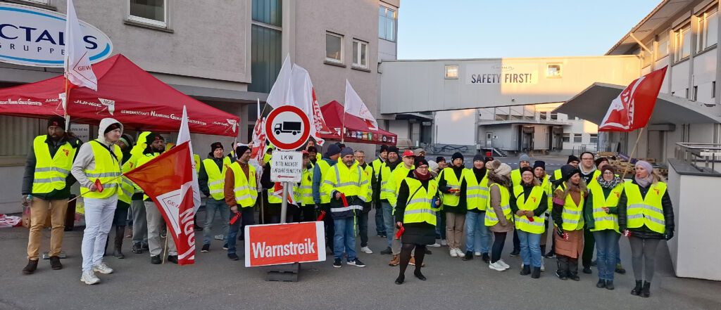 Am 18. März vor dem OMIRA-Stammsitz in Ravensburg. Foto: NGG