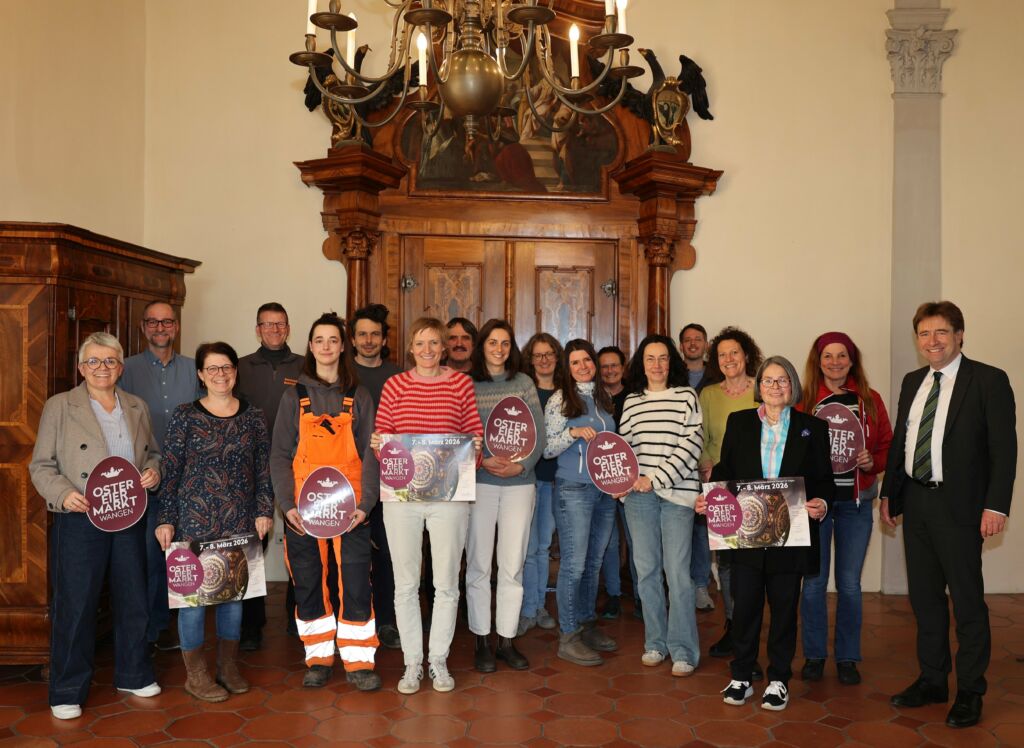 OB Lang dankte diesen Personen, die neben weiteren Helfern für das Gelingen des Projektes Ostereiermarkt / Osterbrunnen sorgen. Foto: Stadt Wangen