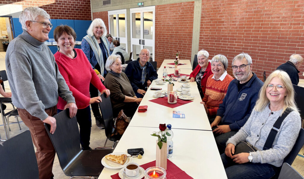 Streng hatten es die Mitglieder des Kirchengemeinderats und ehrenamtliche Helferinnen und Helfer – viele davon mussten sich ja auch einen Urlaubstag nehmen – denn sie hatten ganztägig dafür Sorge getragen, dass sich die Pilger in der Gemeindehalle mit Speisen und Getränken sowie Kaffee und gespendeten Torten und Kuchen stärken konnten. Das Serviceteam im Küchenbereich wie im Saal schaffte es zur Mittagszeit, als alle Stühle belegt waren, die etwa 250 Essensgäste rasch und freundlichst zu bewirten.