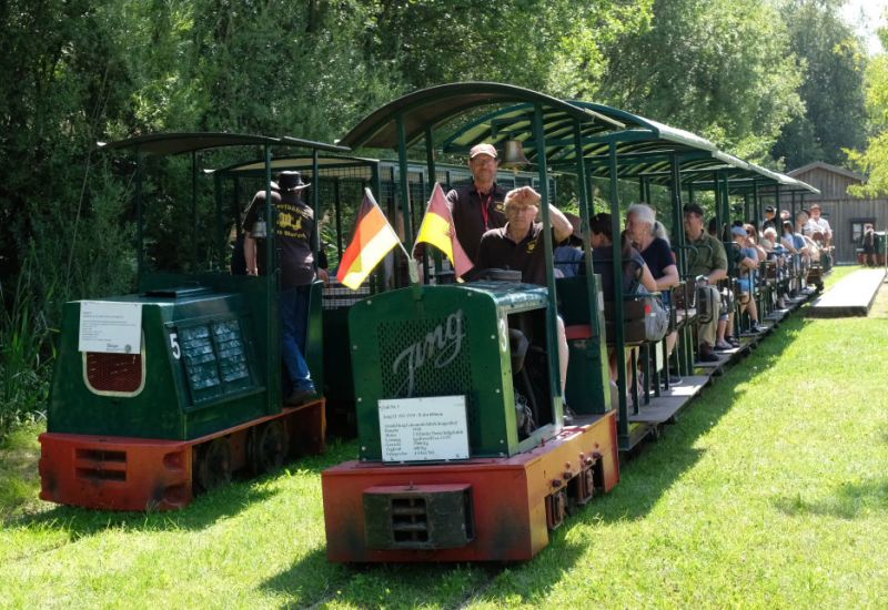 Bad Wurzach – Die diesjährige Torfwerkshockete des Heimatvereines Wurzen und der Torfbähnlesfahrer am 10. August bot Einiges an Attraktionen: Neben einem ganz besonderen Besuchervölkchen aus der benachbarten närrischen Hochburg Bad Waldsee bekam die Veranstaltung auch durch den Besuch von Bernd Dietrich aus Dornbirn mit seiner Jenbach-Pony-Lok einen internationalen Anstrich.