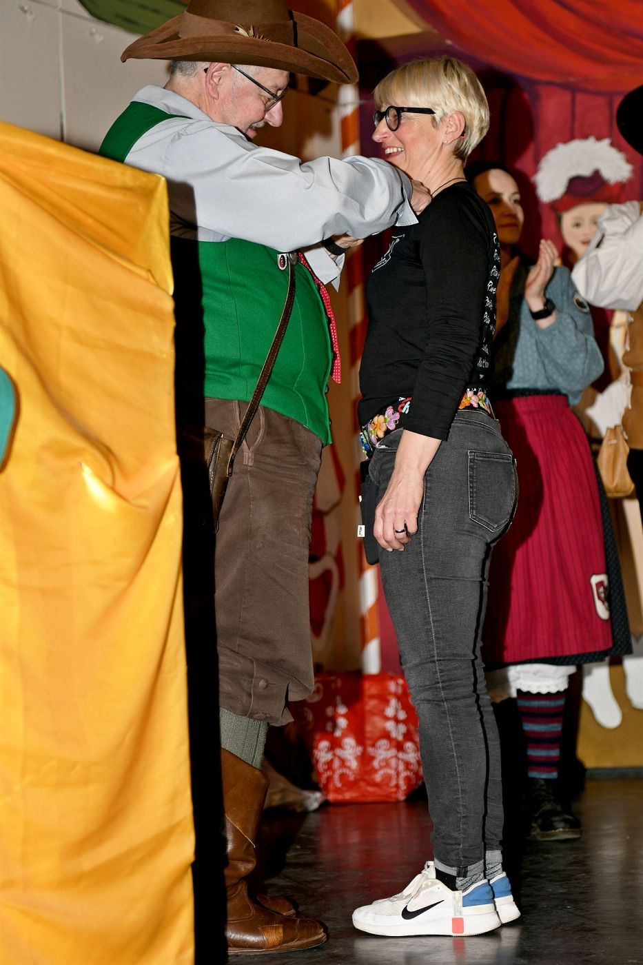 Zunftmeisterin „Susa“ lieferte sich mit dem entmachteten Schultes noch ein Duell zwecks Toiletten für den bevorstehenden Wald-Kindergarten. Auch die Probleme mit Feuerschutz und Rauchmelder musste der Gemeinderat auf der Bühne testen.