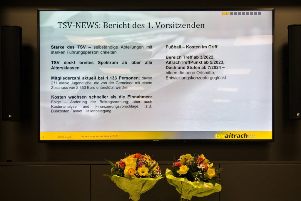 Aitrach – Am 28. März konnte der 1. Vorsitzende des TSV Aitrach, Manfred Saitner, bei der Jahreshauptversammlung im TREFF neben den zahlreichen Mitgliedern auch die Ehrengäste Siegfried Gebhard, Josef Rief ehemaliger Abgeordneter des Bundestages, Bürgermeister Thomas Kellenberger, Mitglieder des Gemeinderates, sowie Ehrenmitglieder, Helfer und Förderer begrüßen.